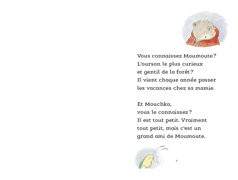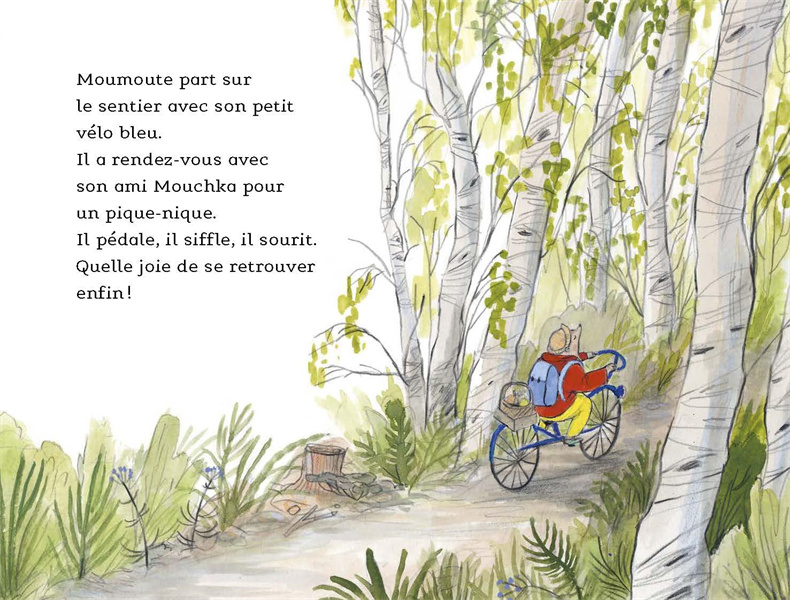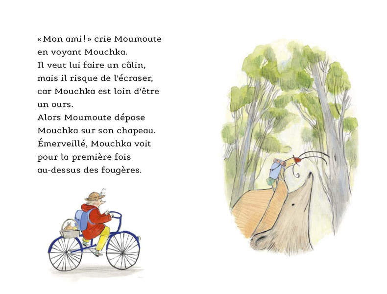 Sur son vélo, il siffle, il sourit : Moumoute est tellement heureux de retrouver Mouchka! Mais, pour manger comme pour s'amuser, entre l'ours et le tout-petit, il y a un problème de taille...