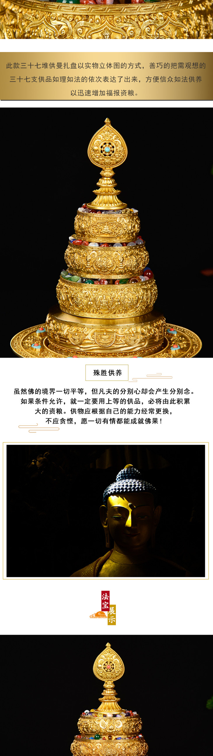 佛堂供品用品供具纯铜曼茶盘配托盘 慧宝37供修法A款曼扎盘 送彩玛瑙宝石