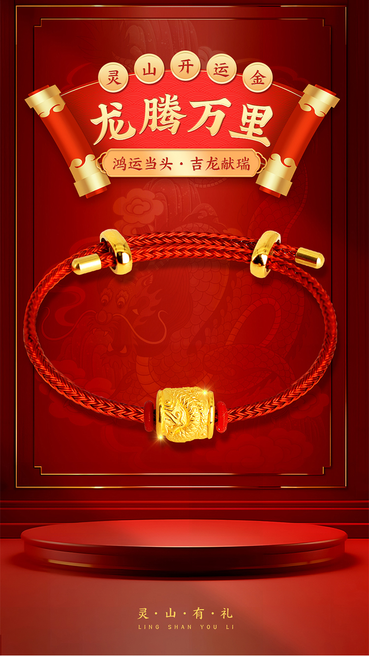 灵山开运金·鸿运·龙腾万里黄金手绳