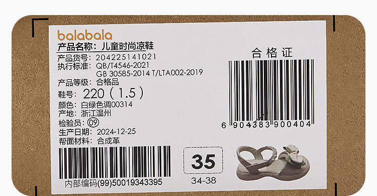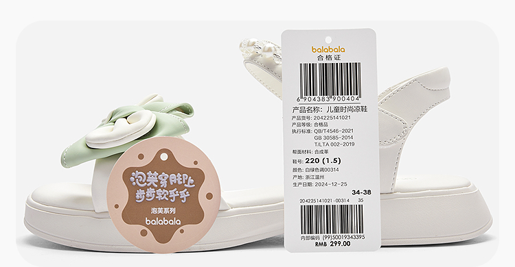 【商场同款】巴拉巴拉童鞋女童凉鞋蝴蝶结公主鞋2025夏季新款甜美