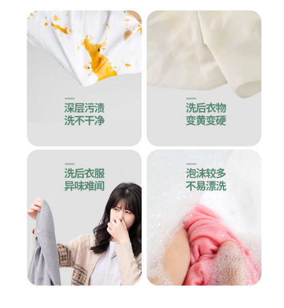 温和无刺激配方 有效洗衣速净护色 柔顺护理衣物多次洗涤之后依然亮丽如新 没有它不能“换新”的东西