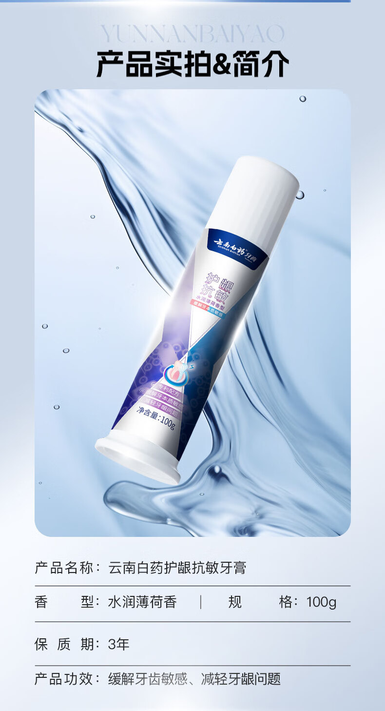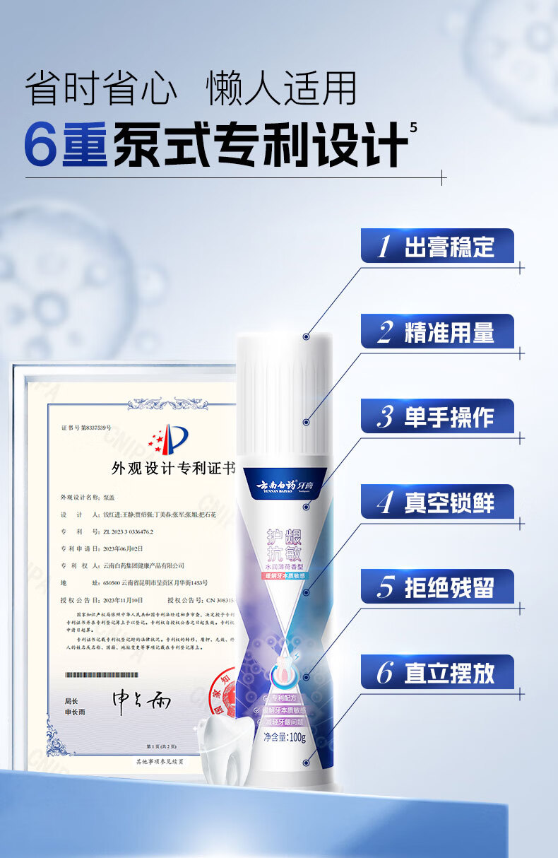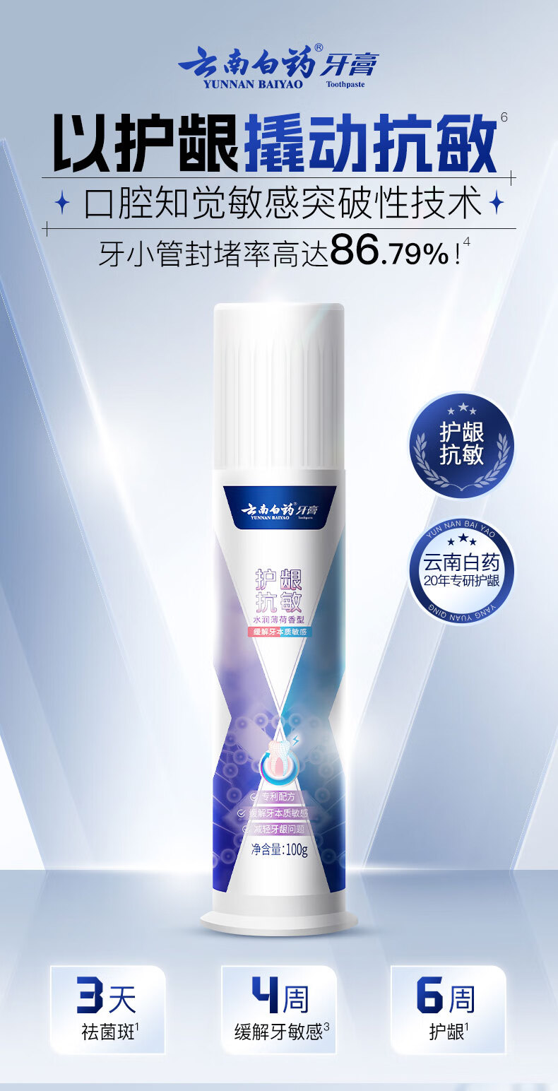 【官方正品】云南白药牙膏泵式按压直立式双效抗敏护龈抗敏100g成人牙齿官方正品