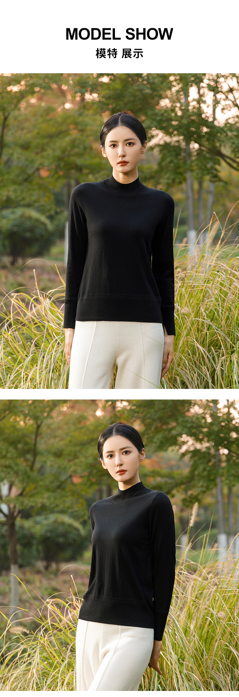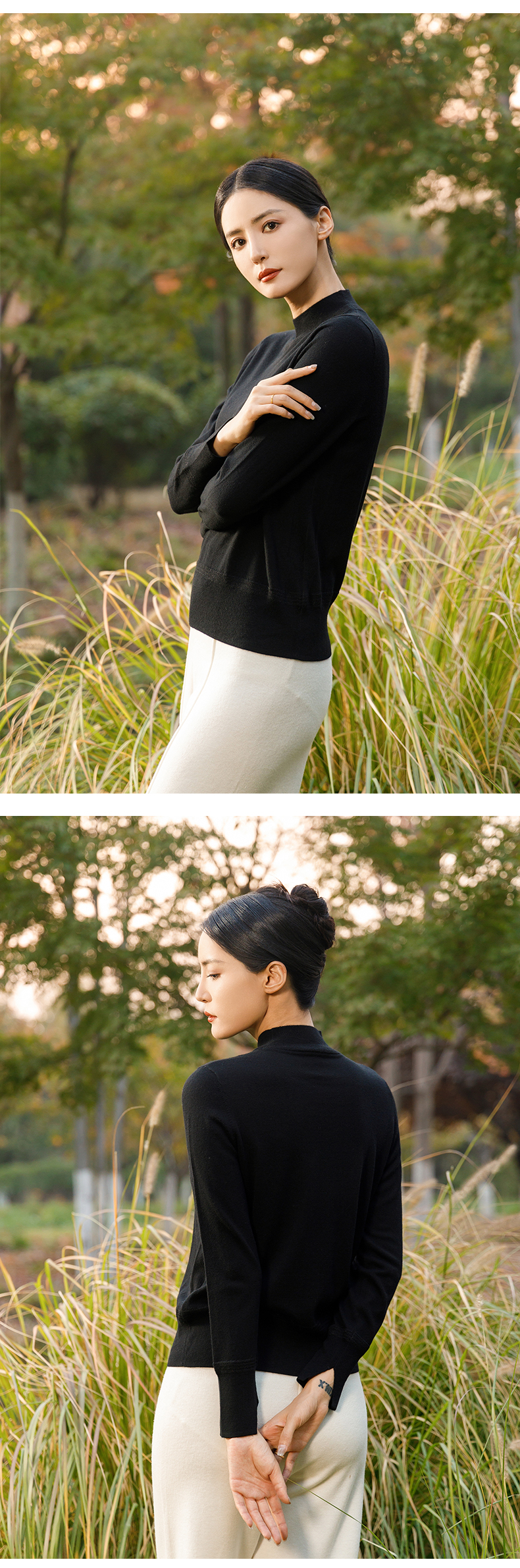 【商场同款】阿菁娜柔软弹力半高领长袖针织毛衫A28Q301026