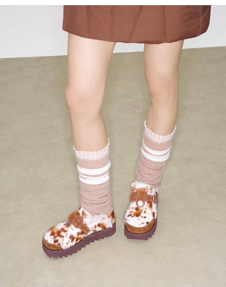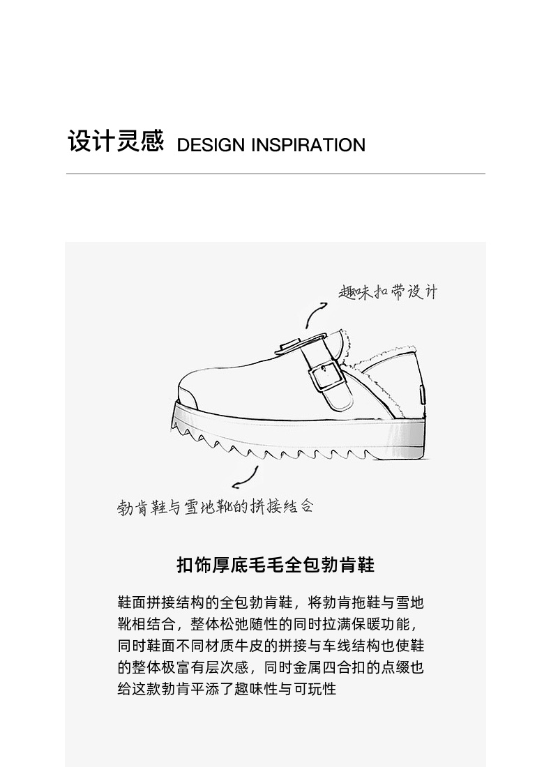 lost in echo2025早秋新款个性扣饰厚底毛毛保暖加绒包头勃肯鞋