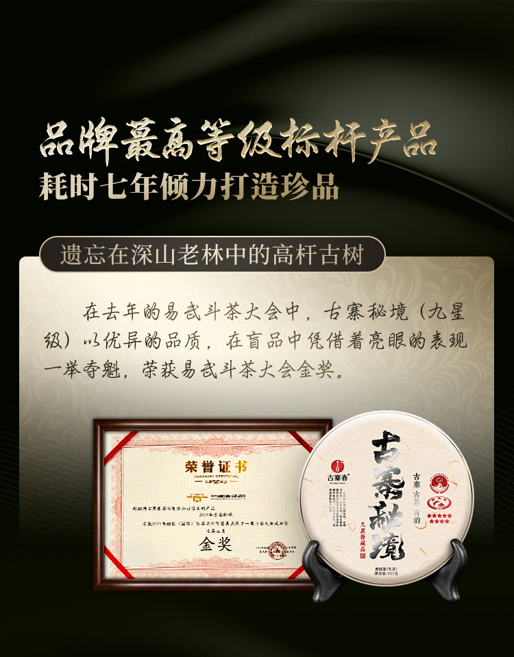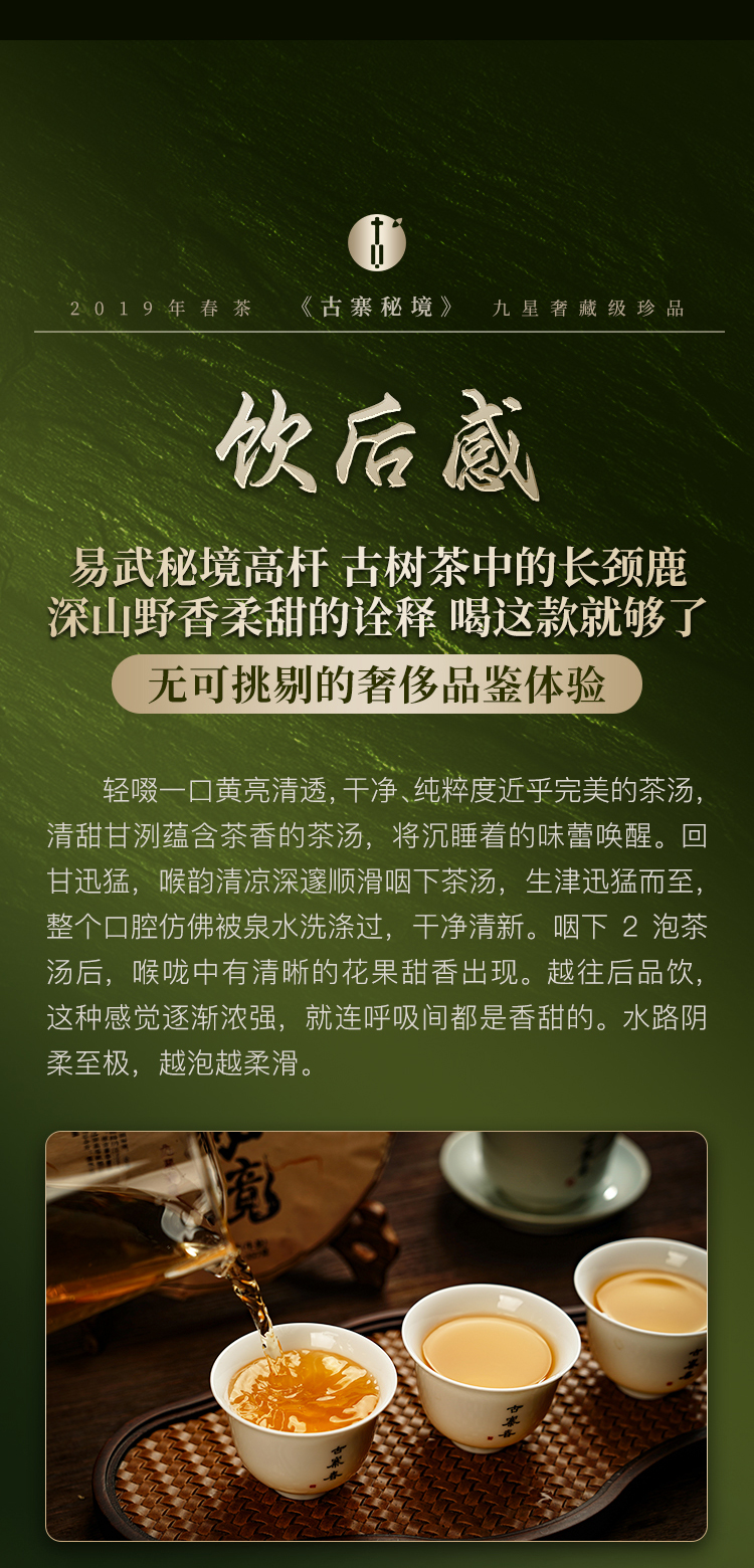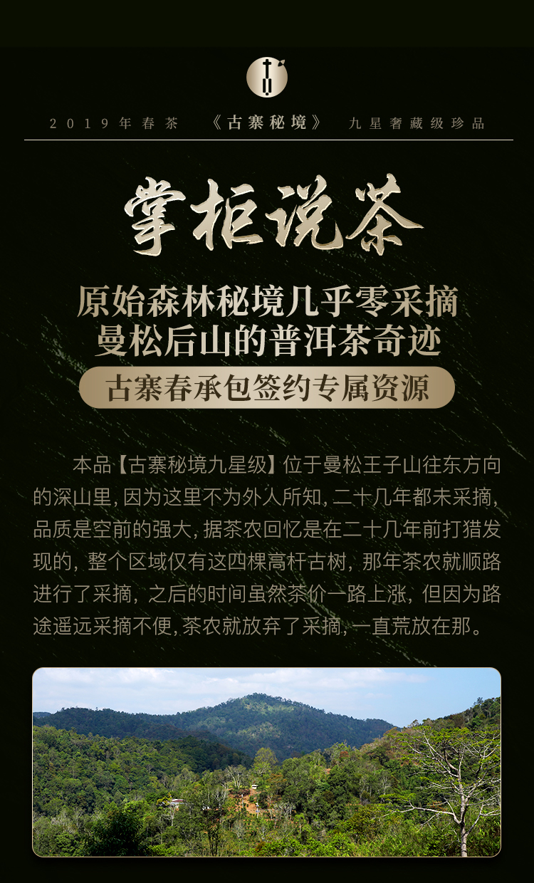 【古寨秘境九星级】2019年头春头采易武曼松秘境全球仅四棵高杆古树,荒放20年第二年开采品质超高!拍5发7单饼铜盒装