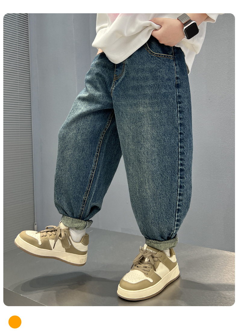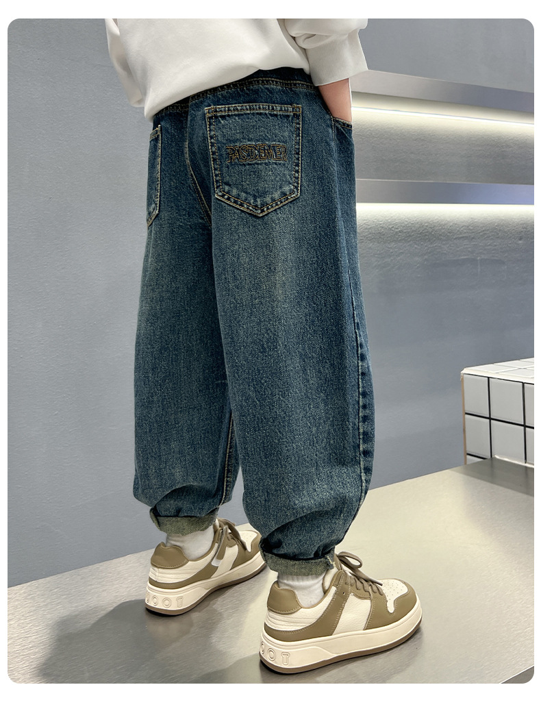 男童字母绣花牛仔裤