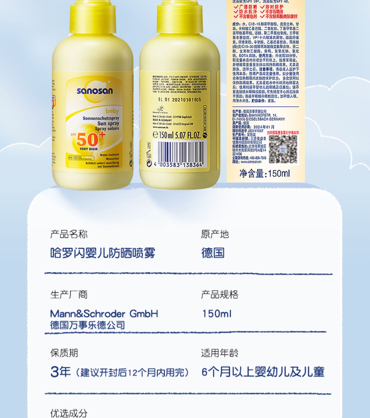 哈罗闪宝宝防晒霜儿童温和防水防晒喷雾150ml