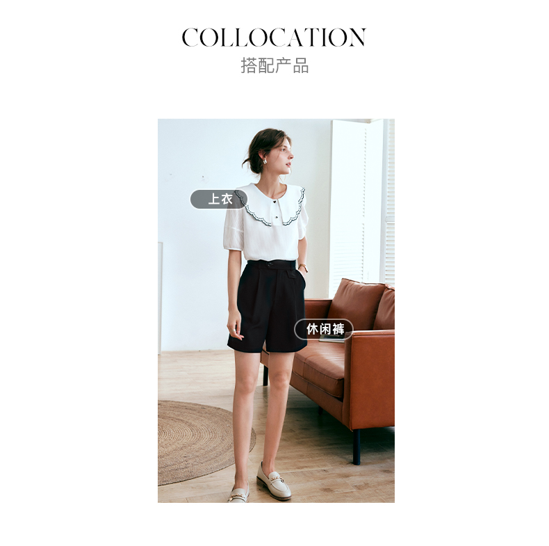 OLrain欧芮儿蓝色撞色领短袖T恤女夏季2025新款简约休闲圆领上衣