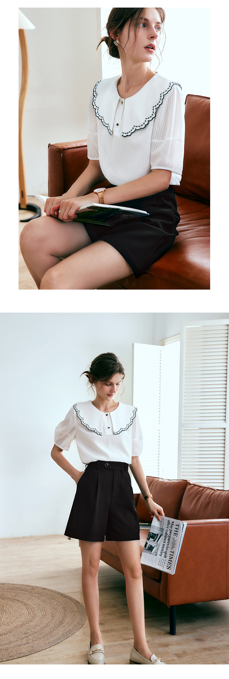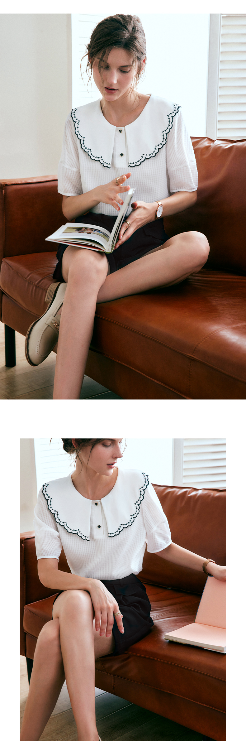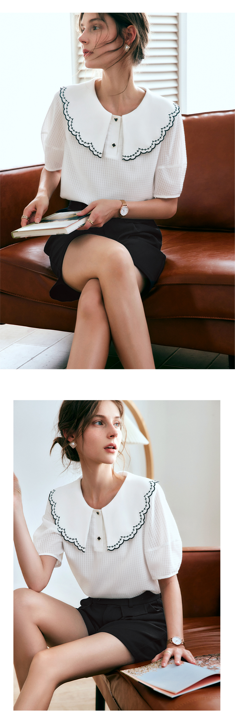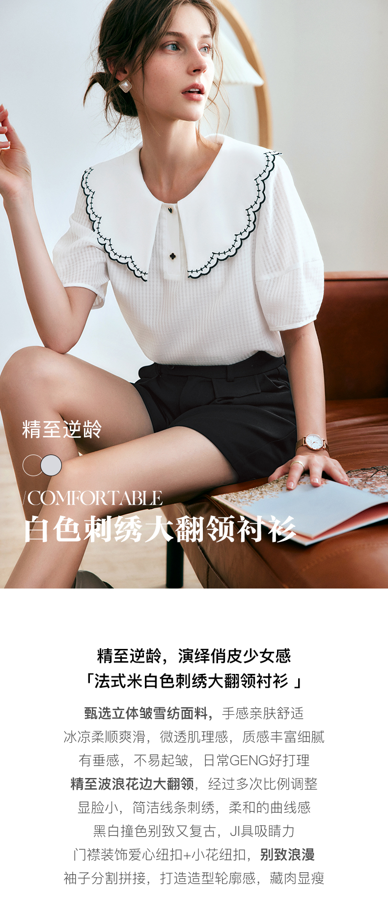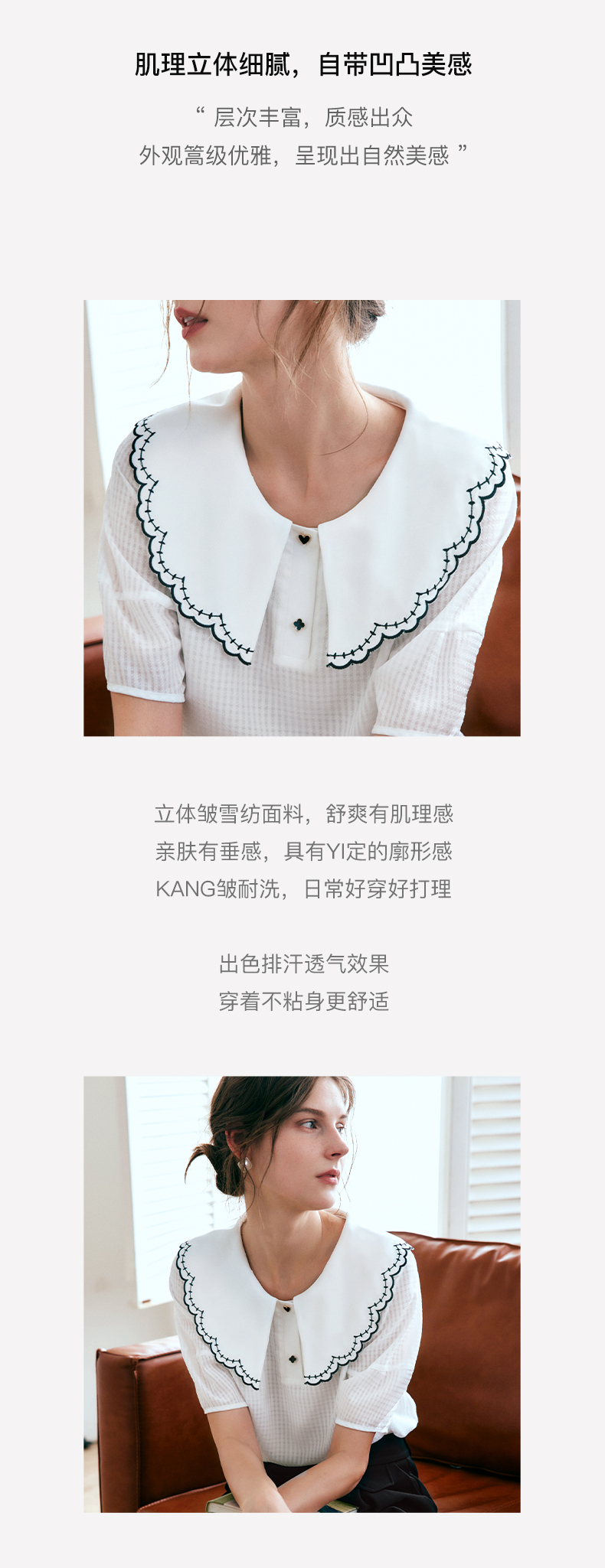 欧芮儿OLrain法式白色蕾丝雪纺衫女夏季2022新款刺绣别致漂亮上衣