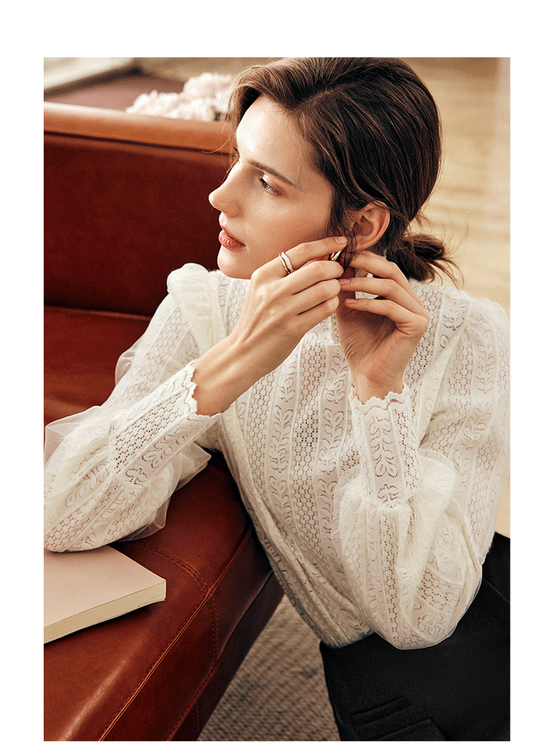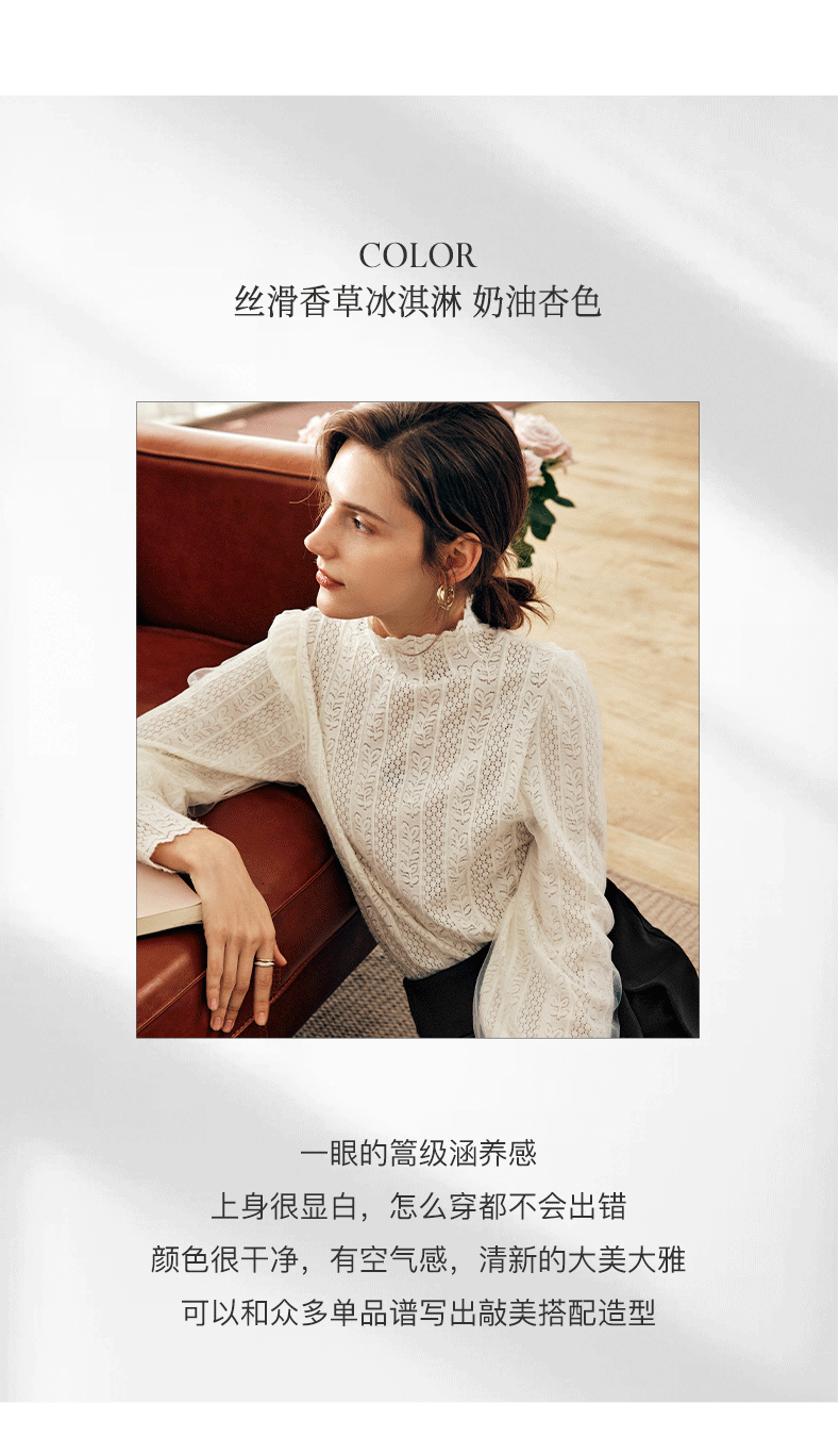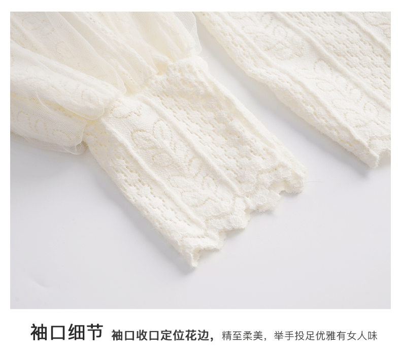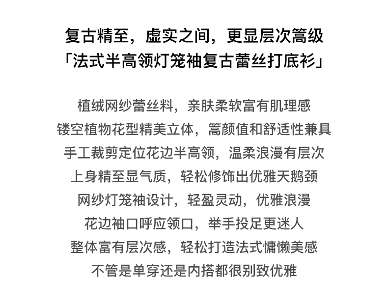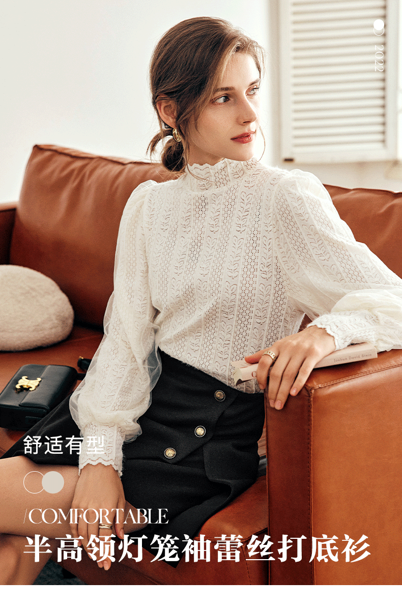 OLrain欧芮儿法式半高领蕾丝衫女秋冬2022年新款复古植绒打底上衣