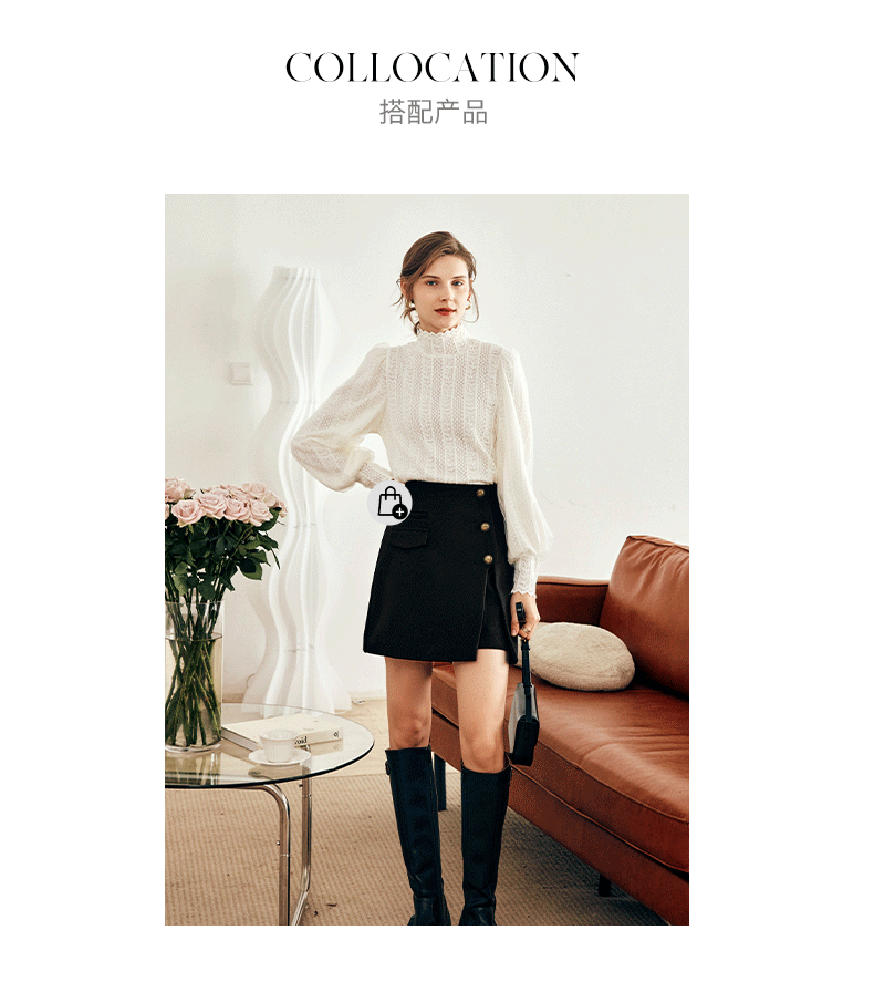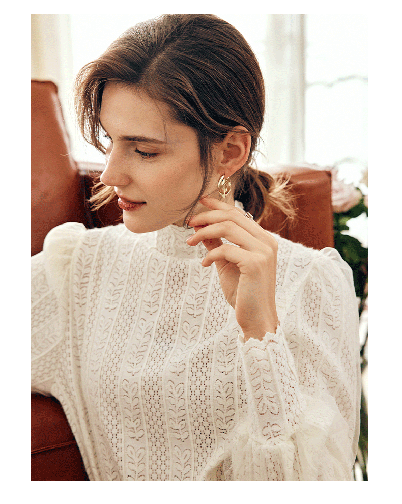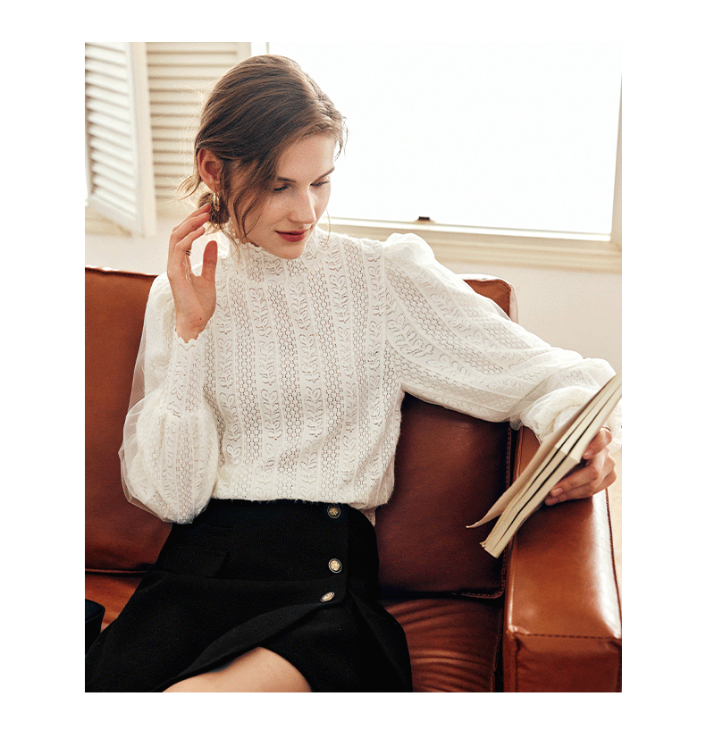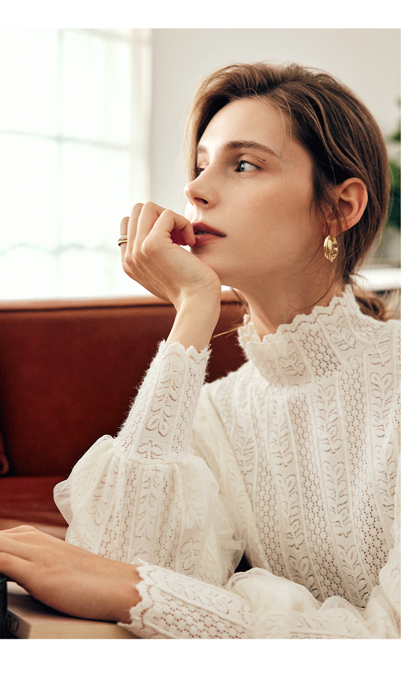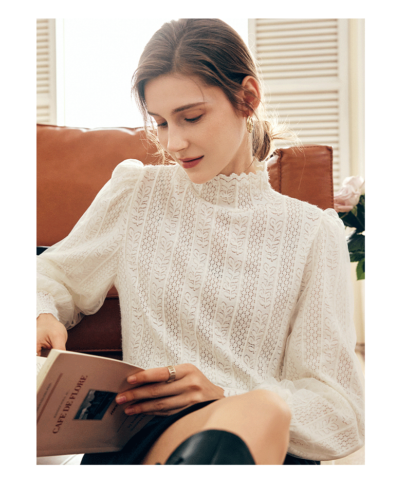 OLrain欧芮儿法式半高领蕾丝衫女秋冬2022年新款复古植绒打底上衣