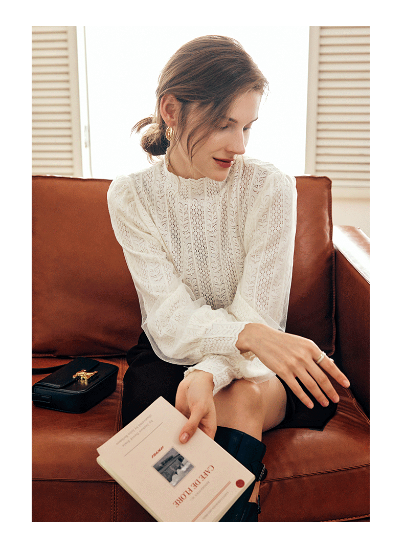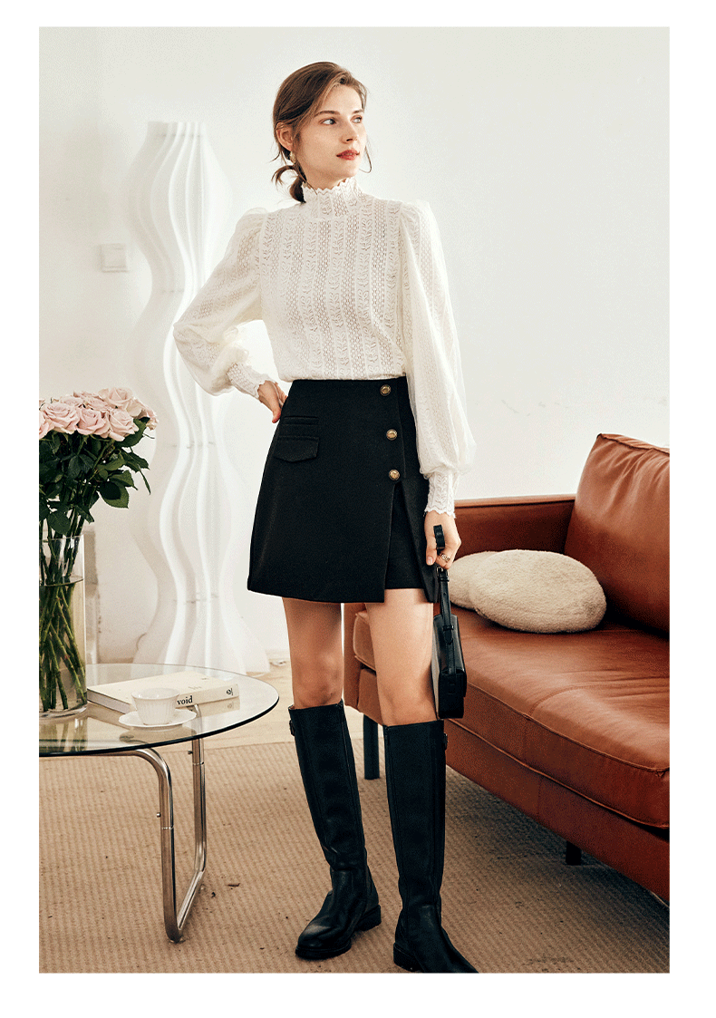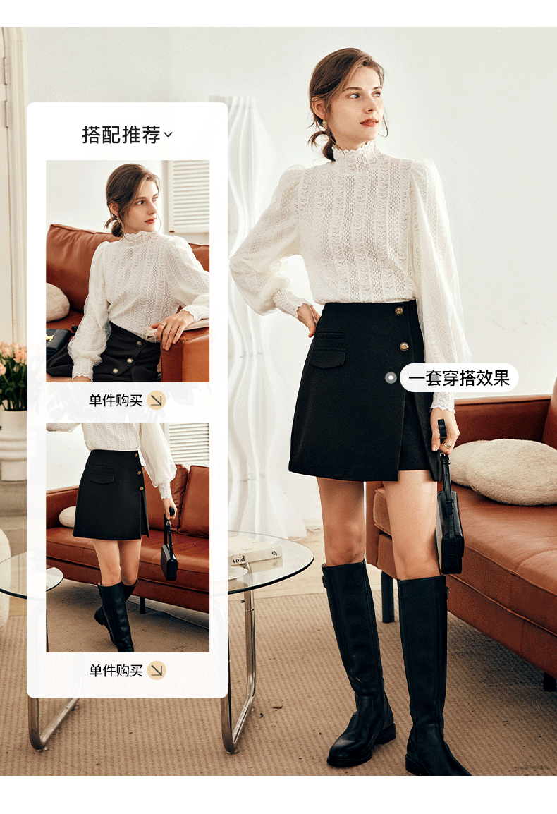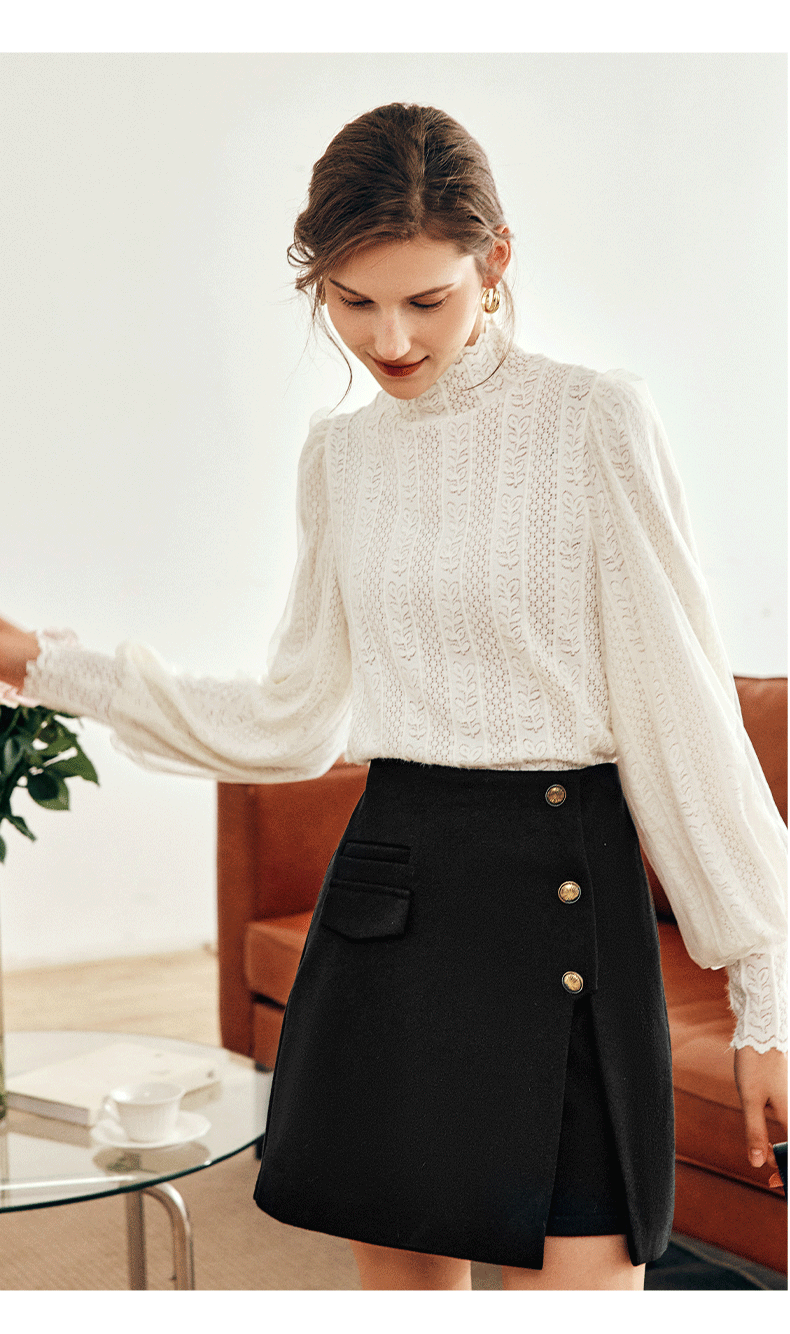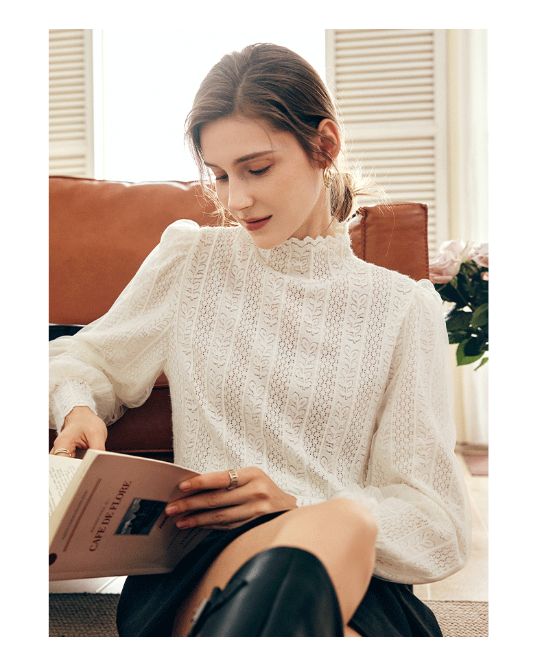 OLrain欧芮儿法式半高领蕾丝衫女秋冬2022年新款复古植绒打底上衣