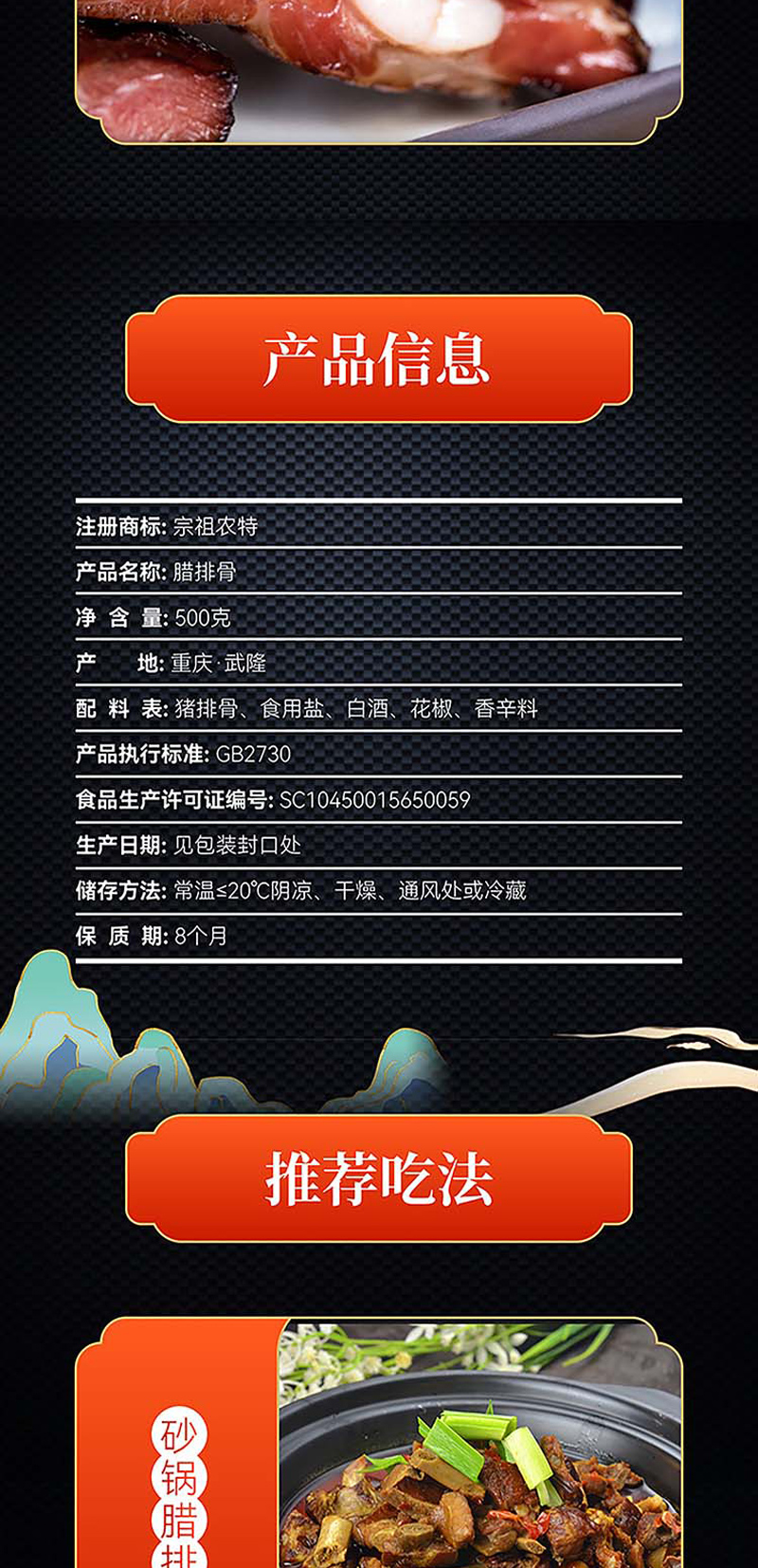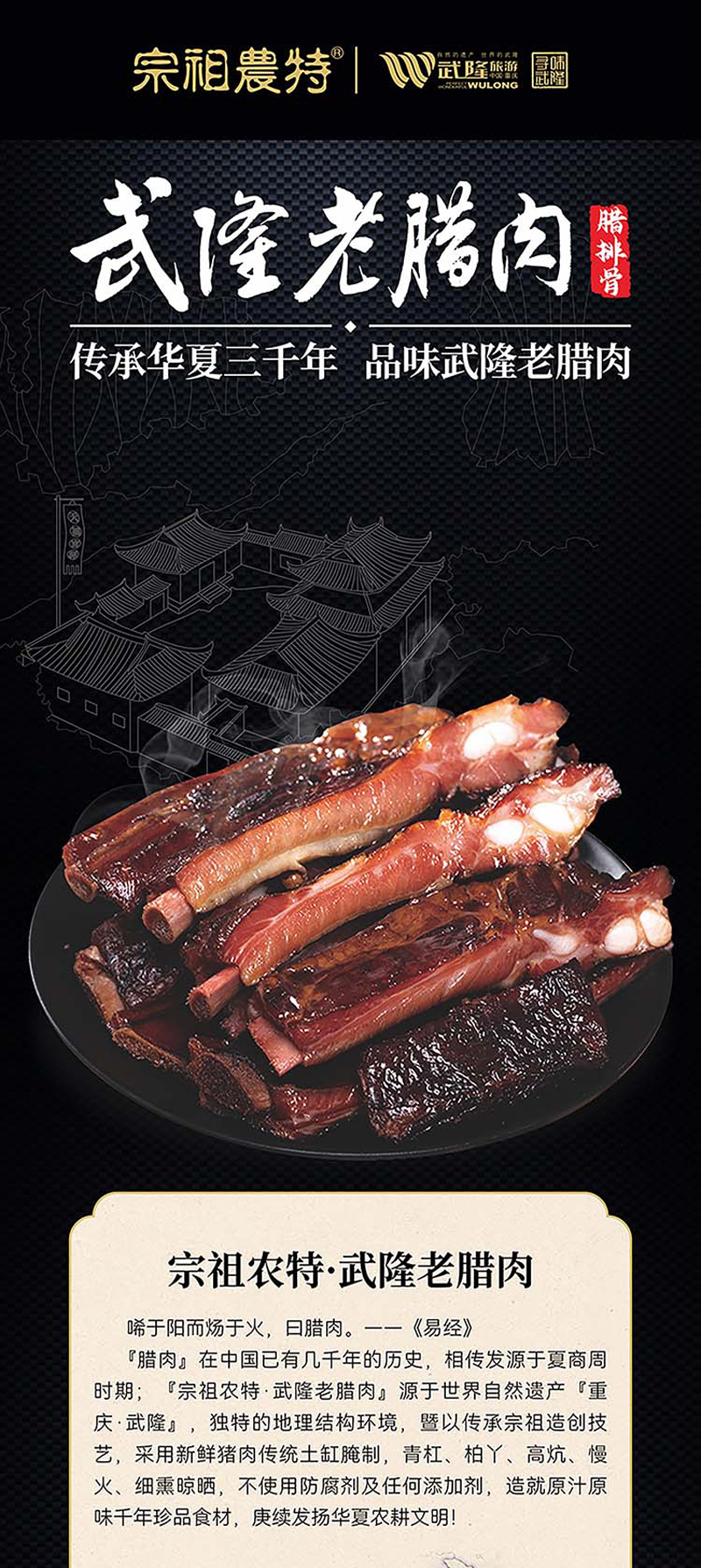 宗祖农特武隆老腊肉 高山土猪腊排骨 500g/袋
