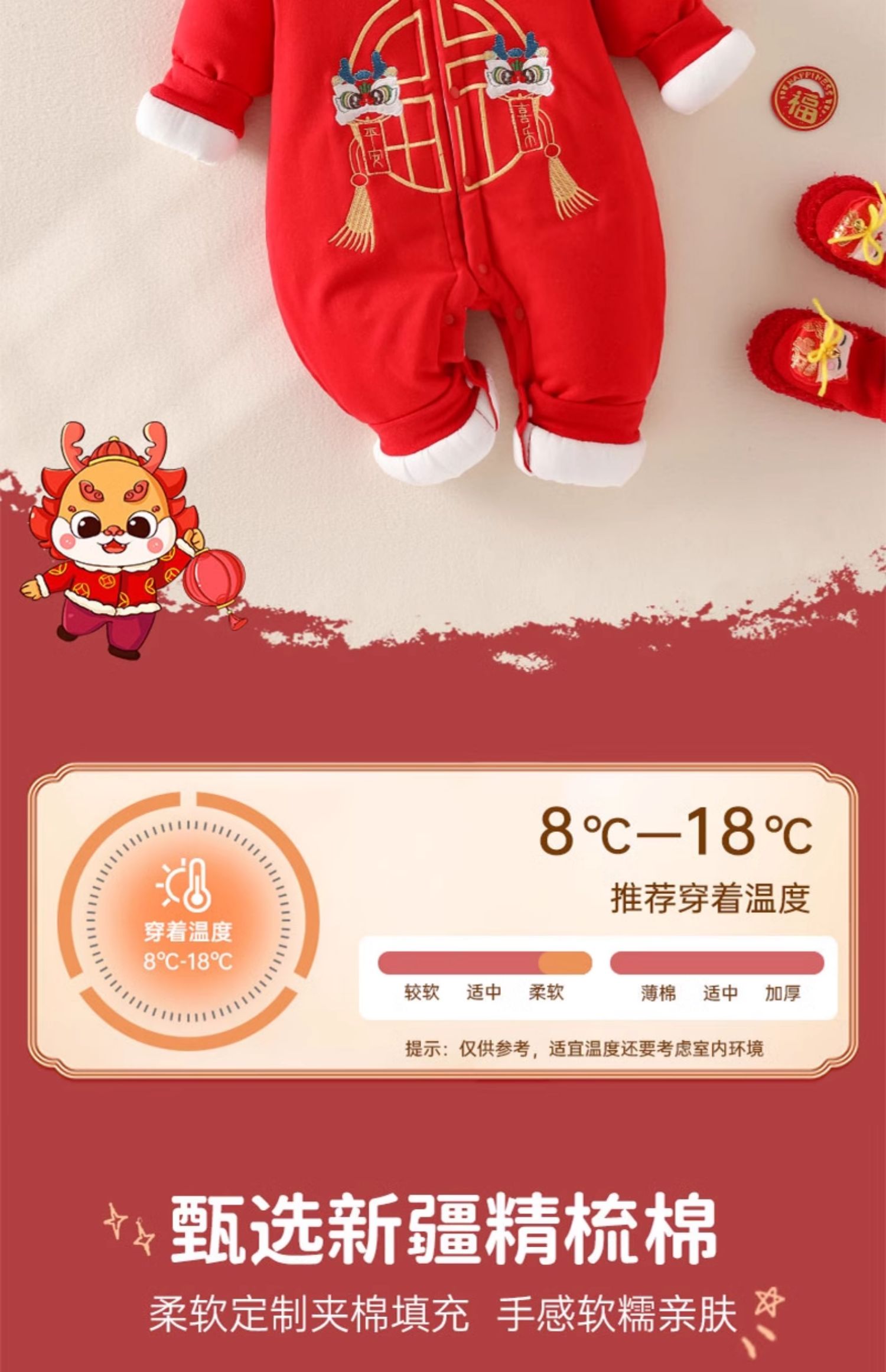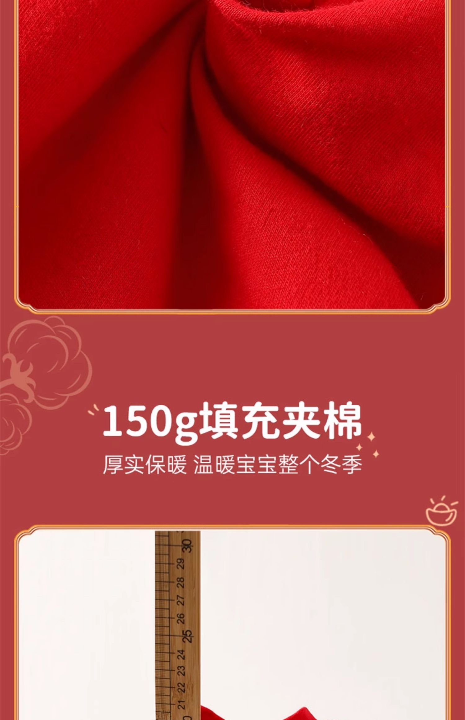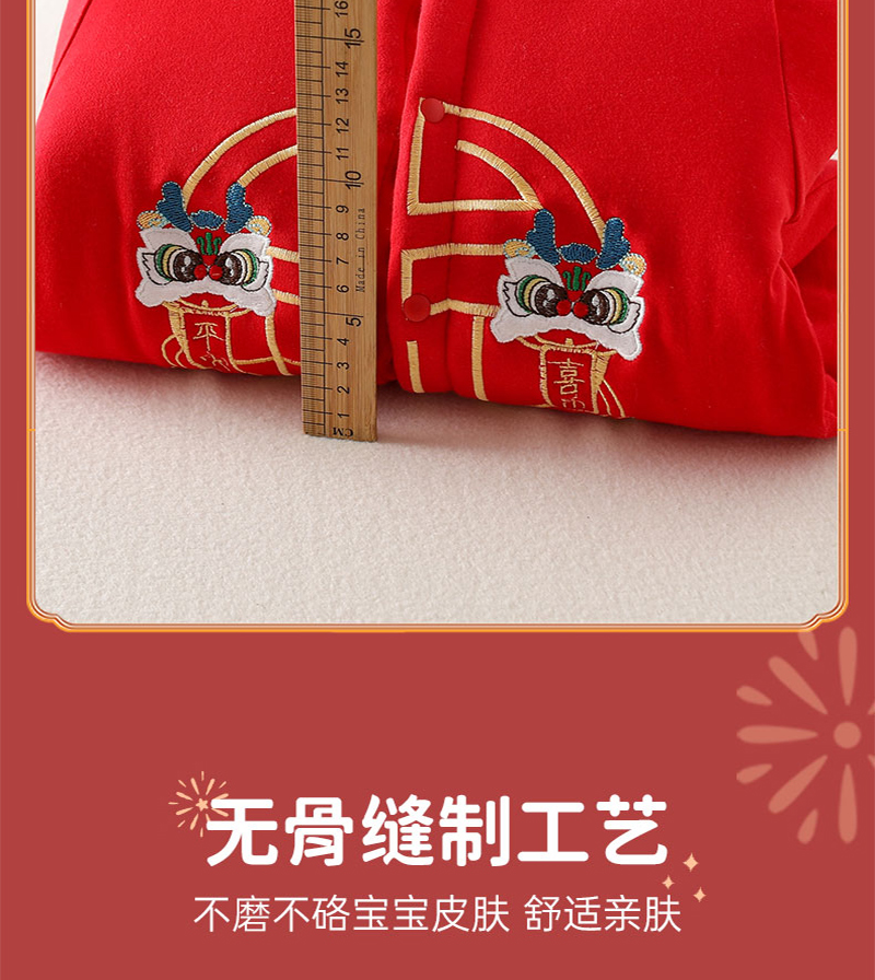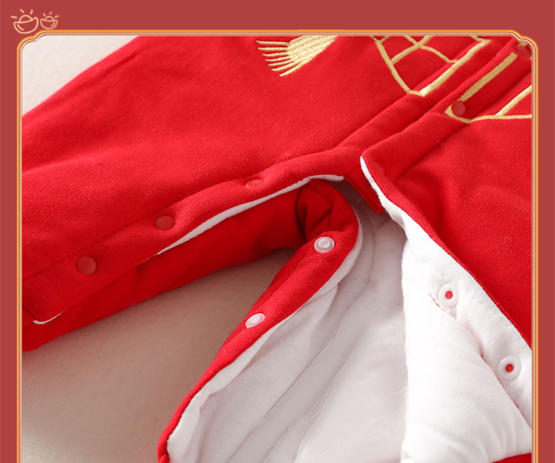 贝肽斯婴儿夹棉连体衣秋冬季宝宝过年拜年衣服新生儿满月保暖衣