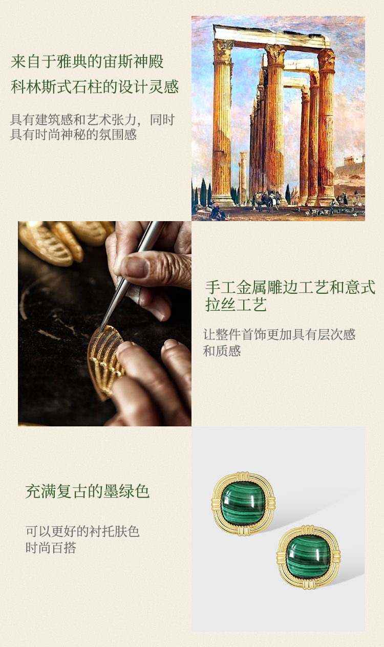 Ancient Rome古罗马时期 | 复古绿石耳钉