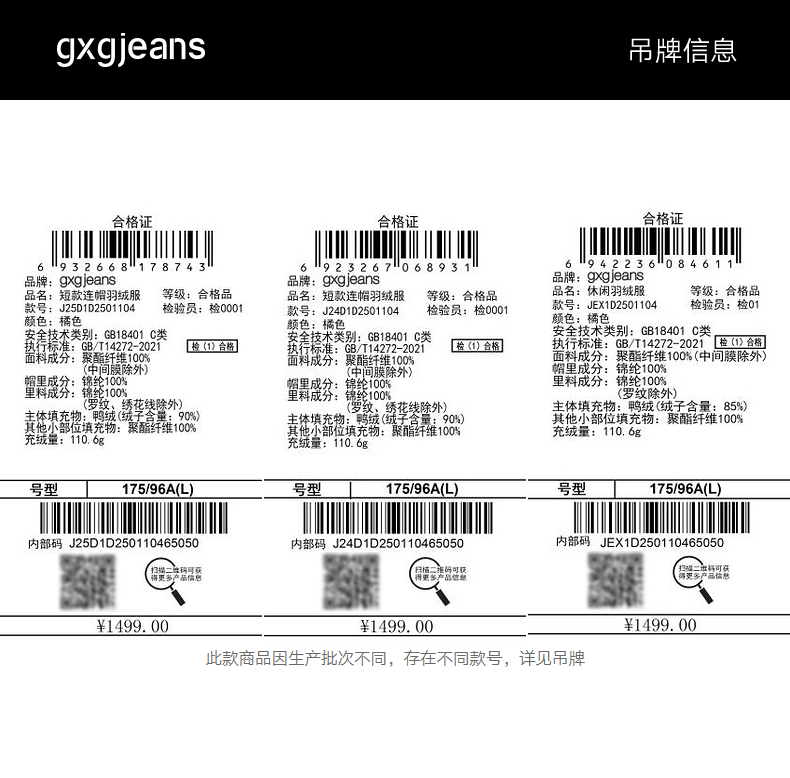 gxg.jeans男装2024年冬季热卖休闲羽绒服J24D1D2501104