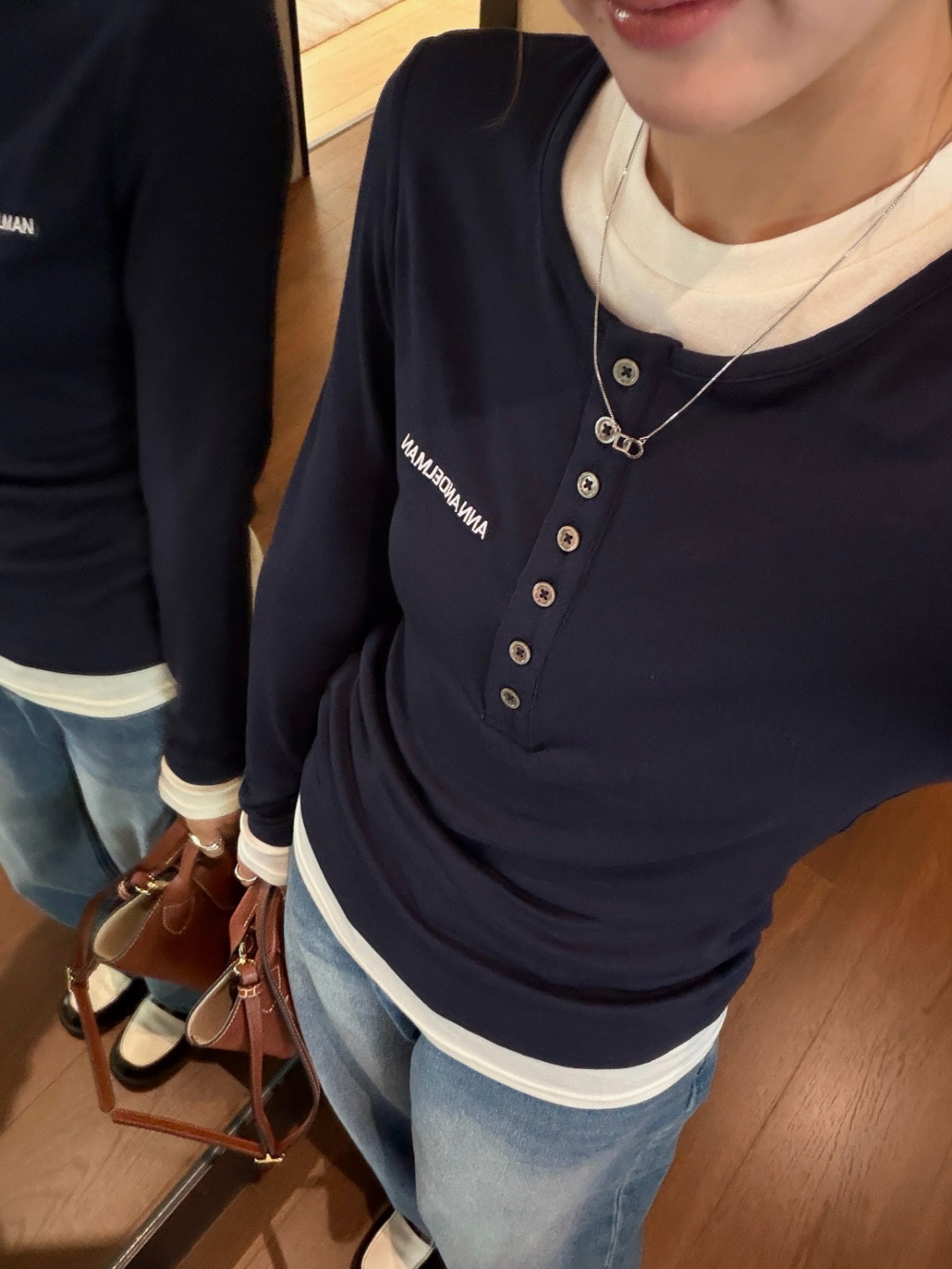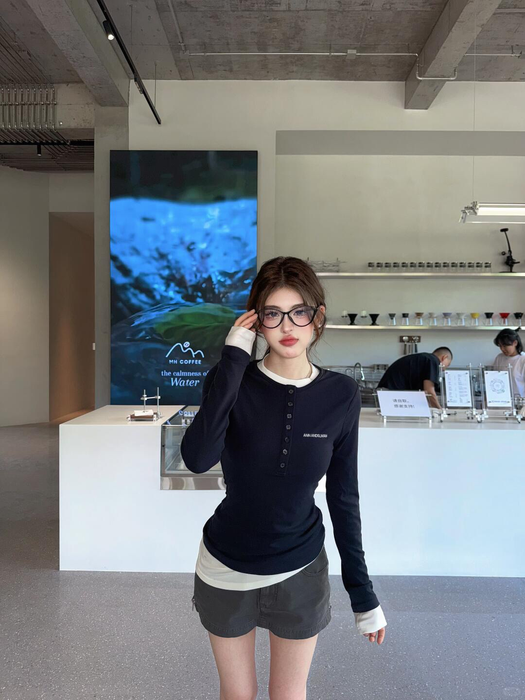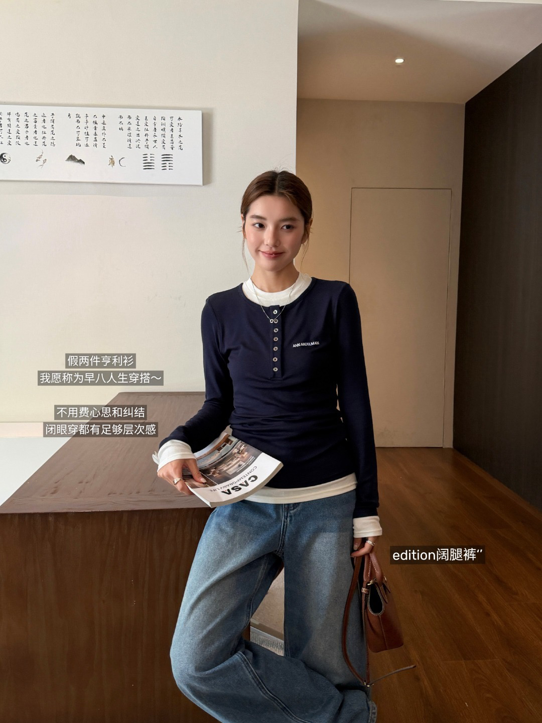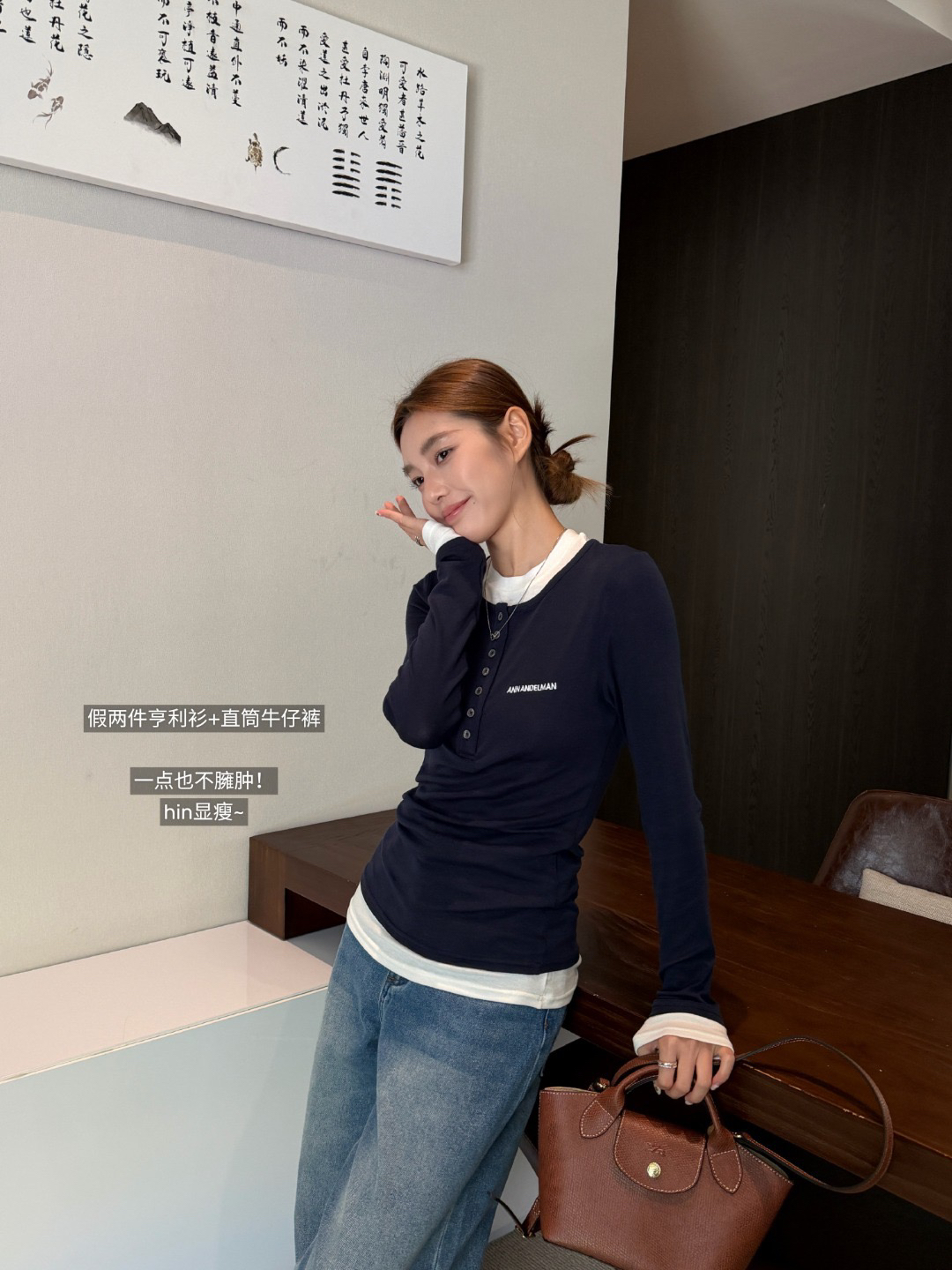 一件超级百搭又不失设计感的单品 白+青的假两件亨利衫造型 低调又高级