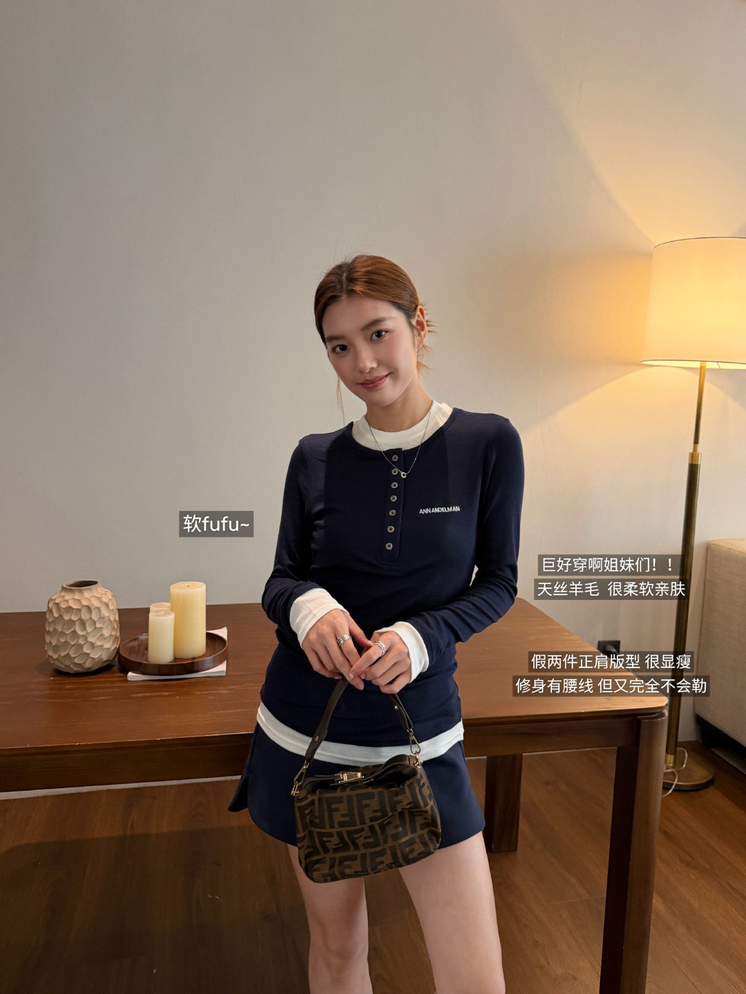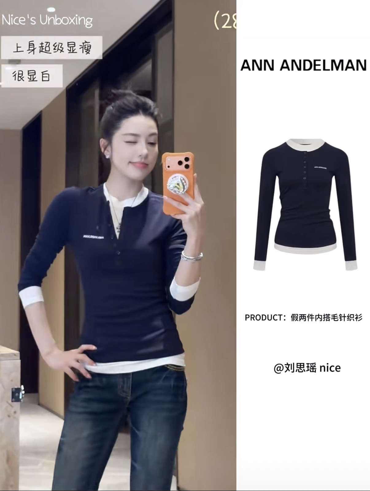 ANN ANDELMA*N天丝羊毛假两件拼色打底衫 好美好绝好省事!注定要被夸爆的一件啊啊!