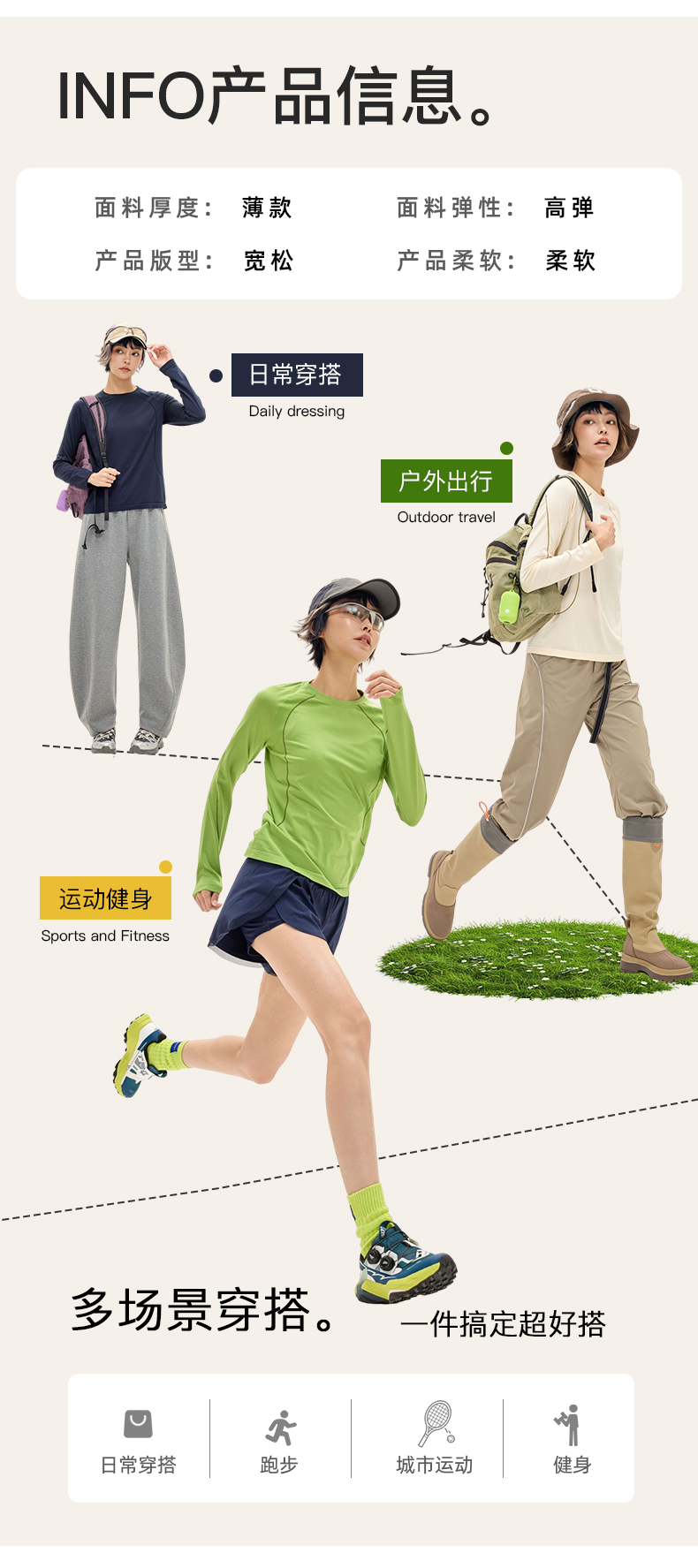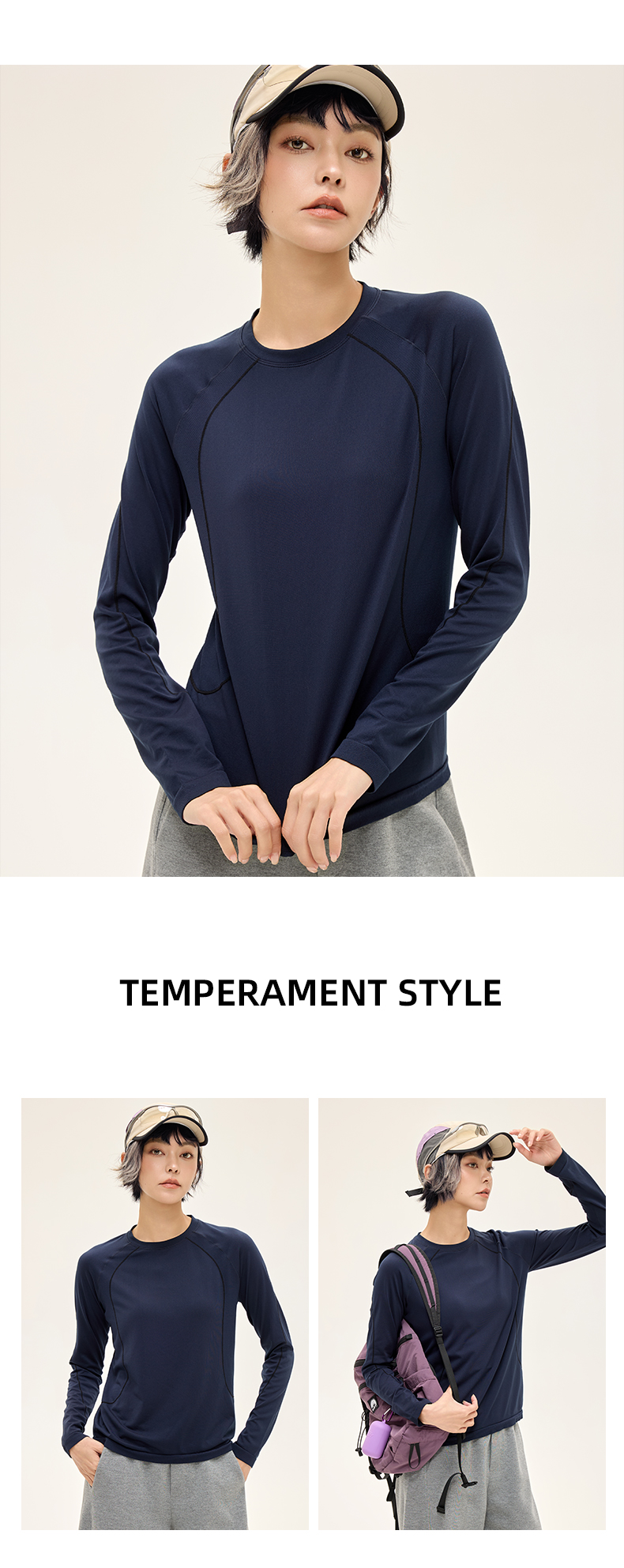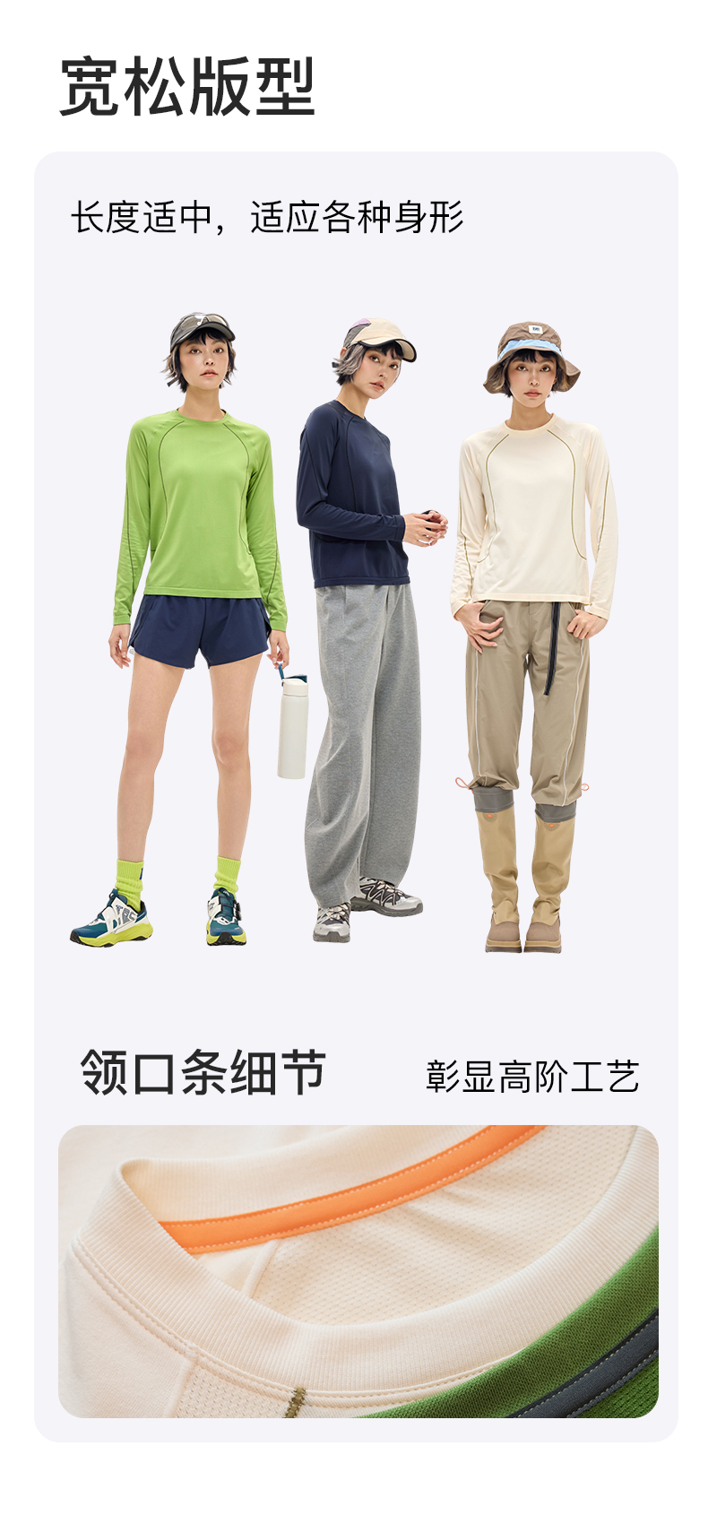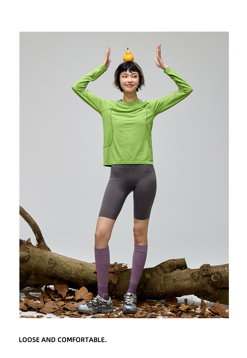 Leorrey乐拉撞色哈苏线宽松吸湿速干柔软秋季户外运动长袖CX3354