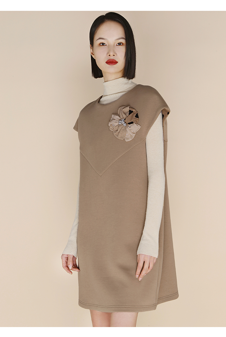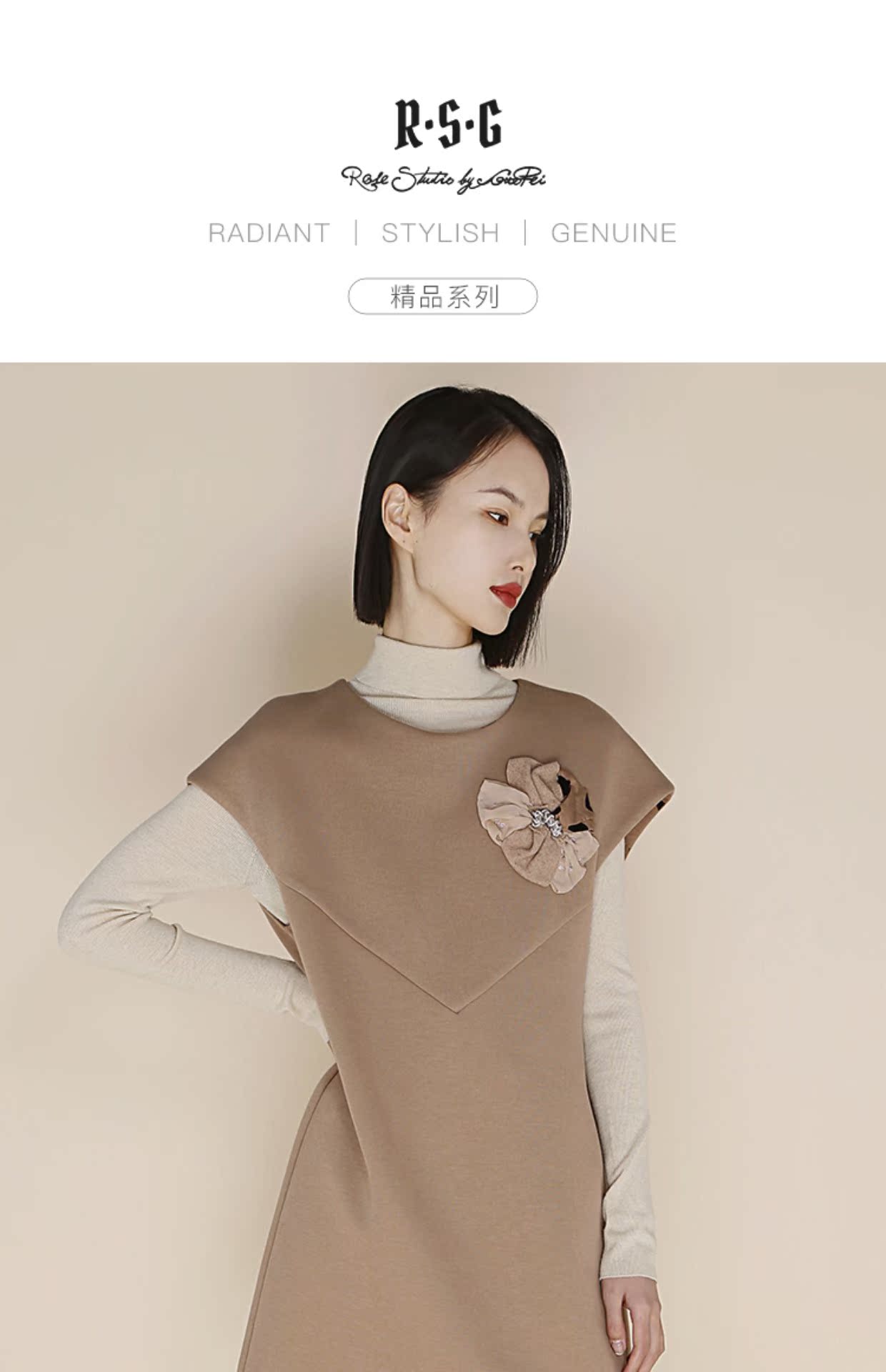 RSG郭培成衣品牌春夏季原创手作花朵装饰爱心无袖连衣裙