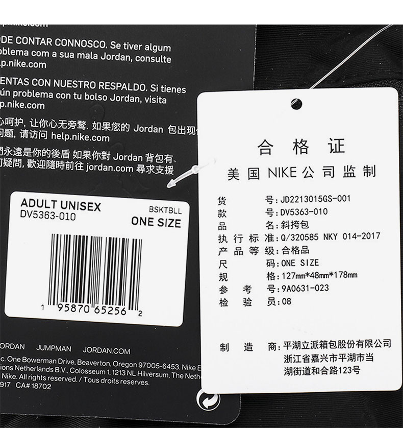 耐克-配饰类(冬)H4正品JORDAN运动休闲男女收纳单肩斜挎包JD2213015