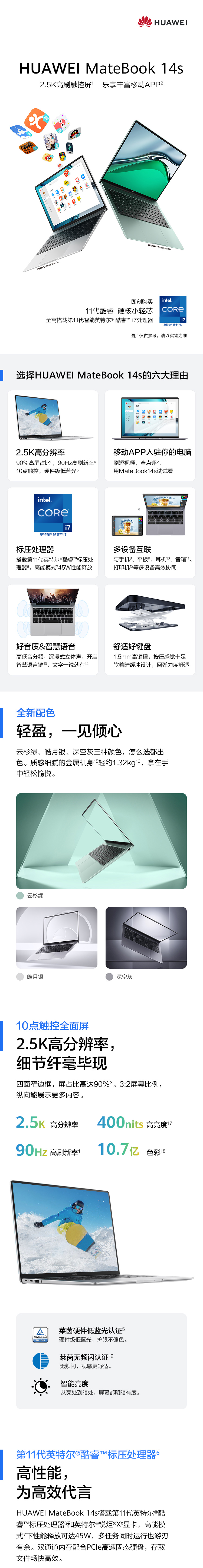 华为笔记本电脑MateBook 14s 11代酷睿 16G 512G锐炬显卡/14.2英寸全面触控屏/轻薄办公本