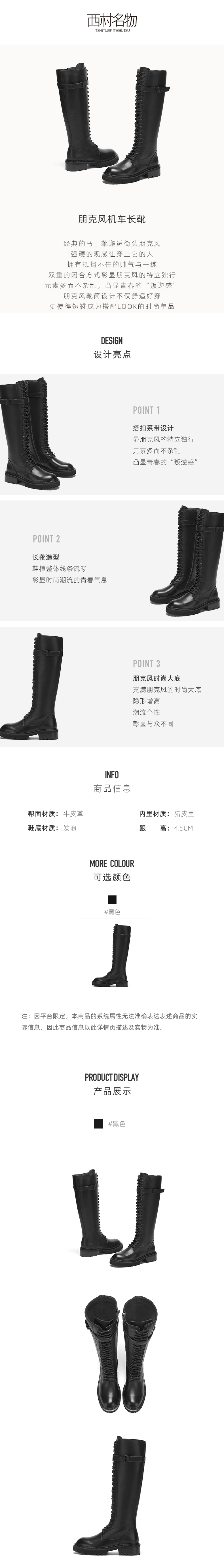 西村名物2020冬季新款长筒靴牛皮革中跟休闲朋克风机车长靴X20DQ40181