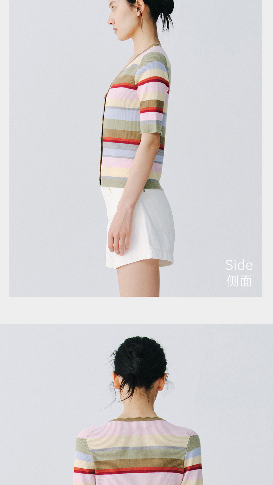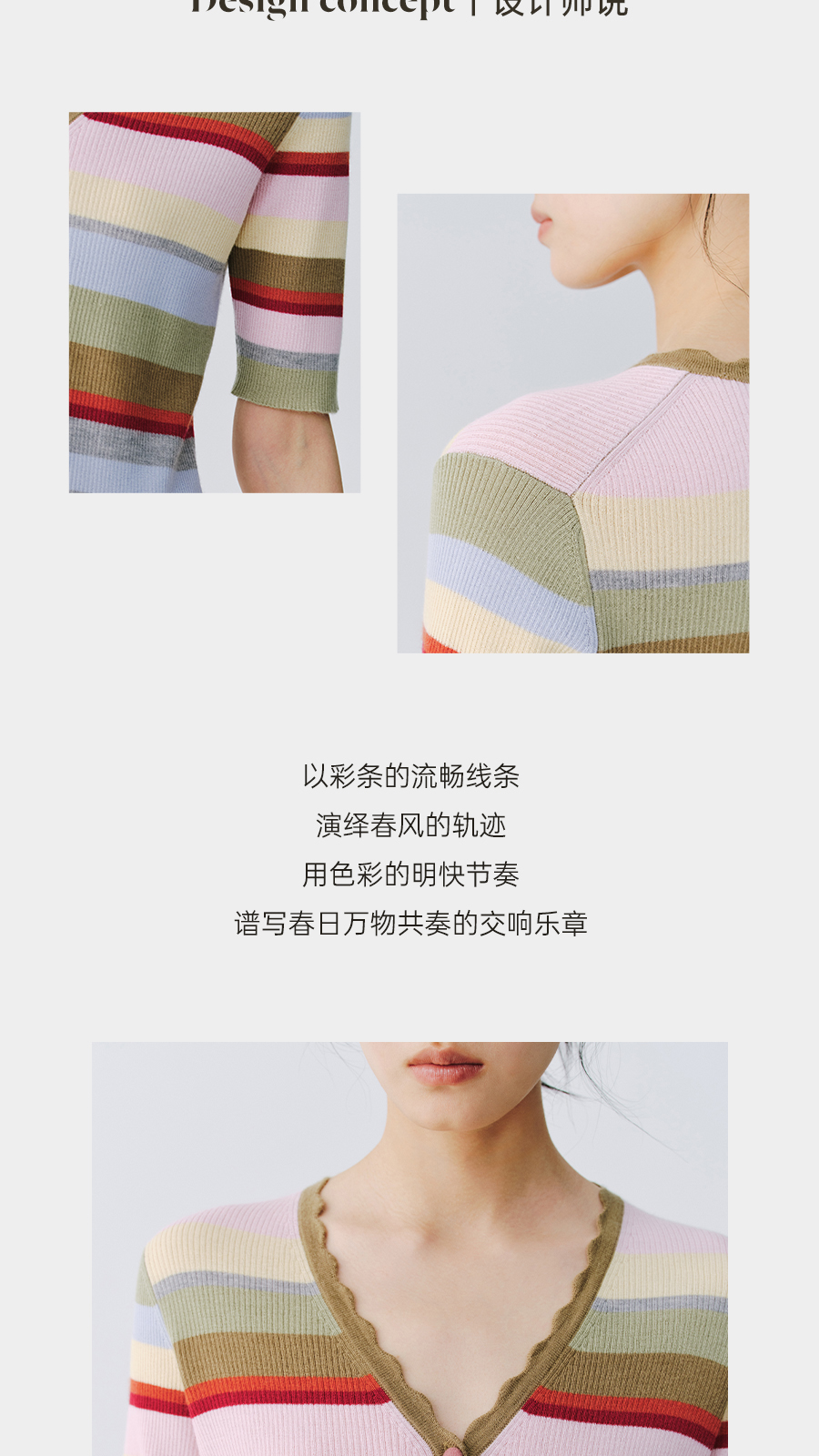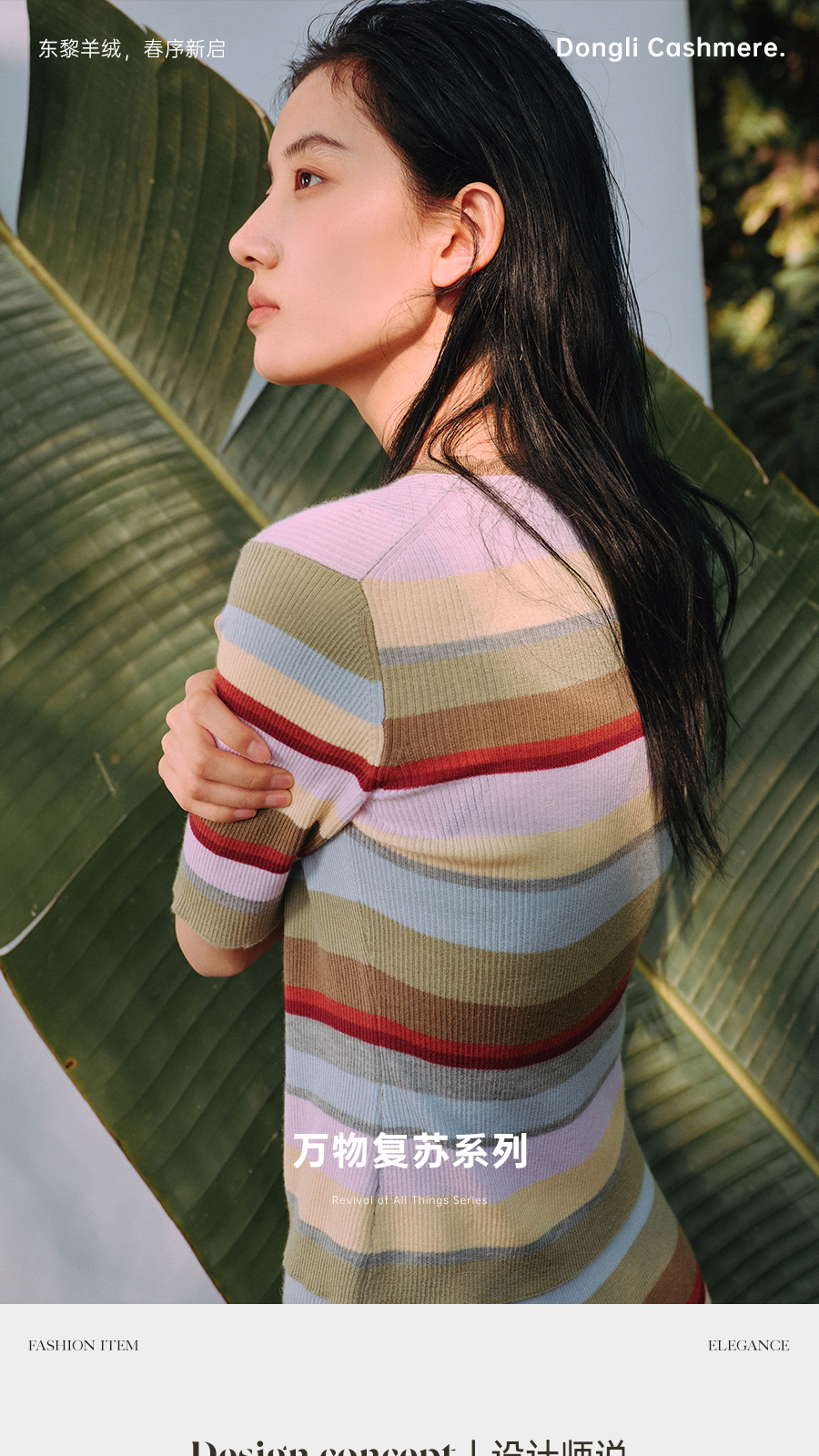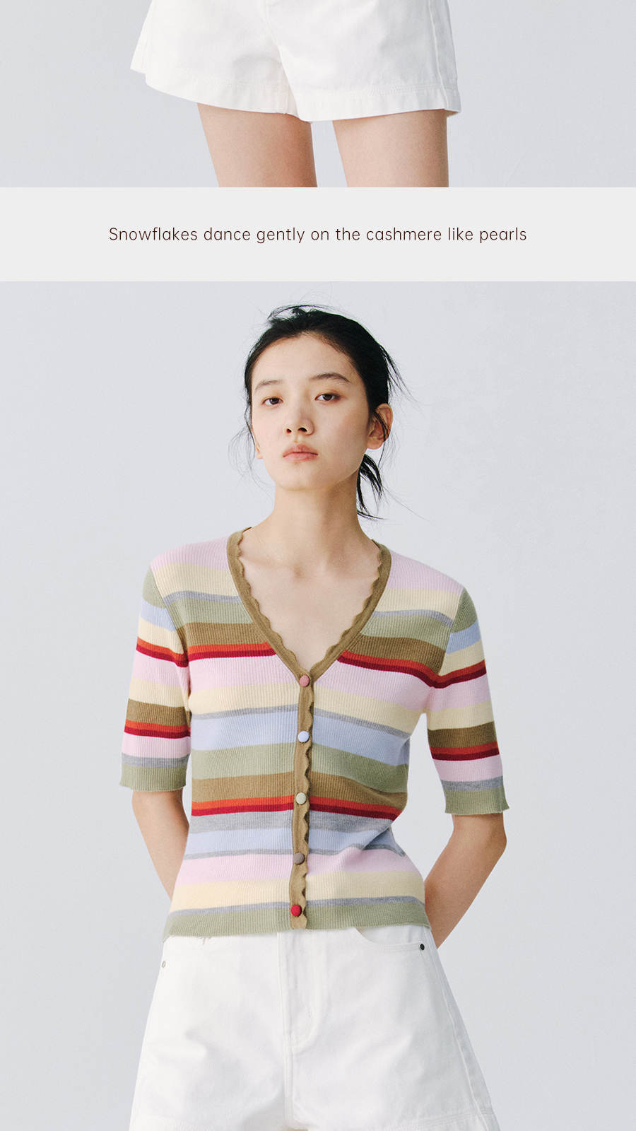 东黎 • 万物复苏 一目彩虹 山羊绒桑蚕丝 女士春夏V领半袖开衫 6050