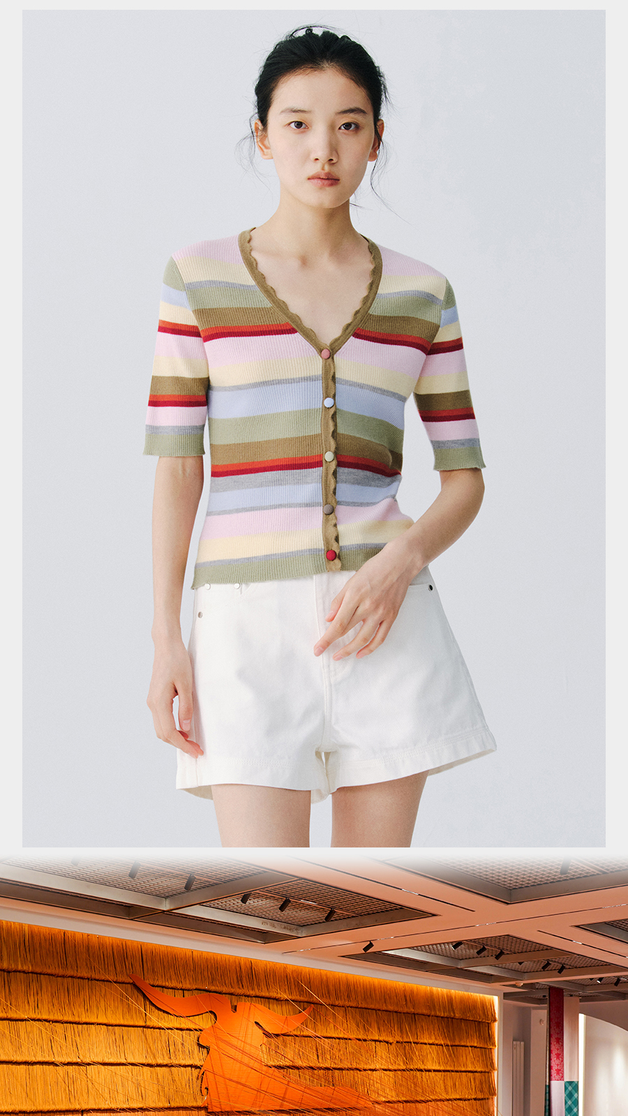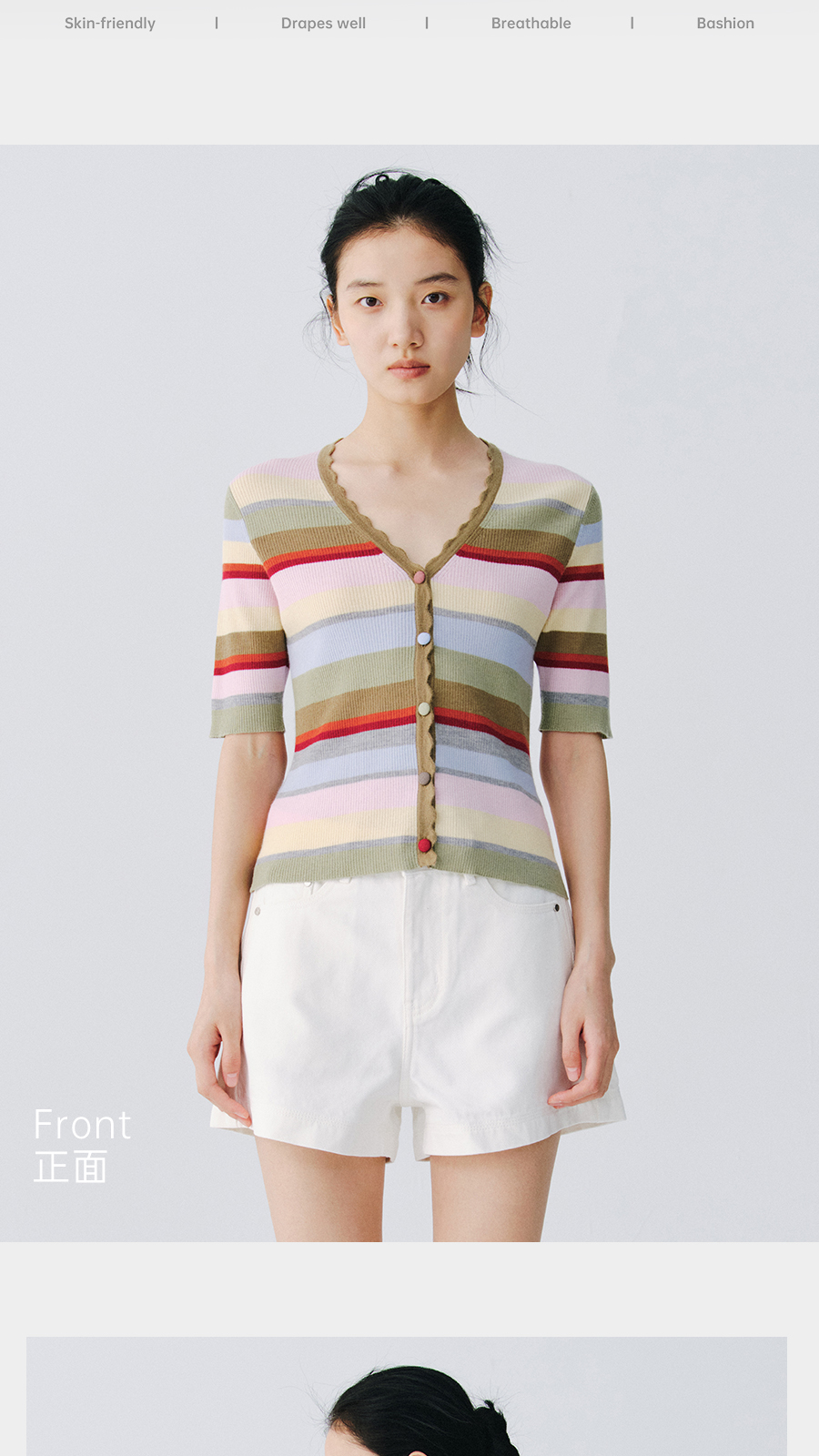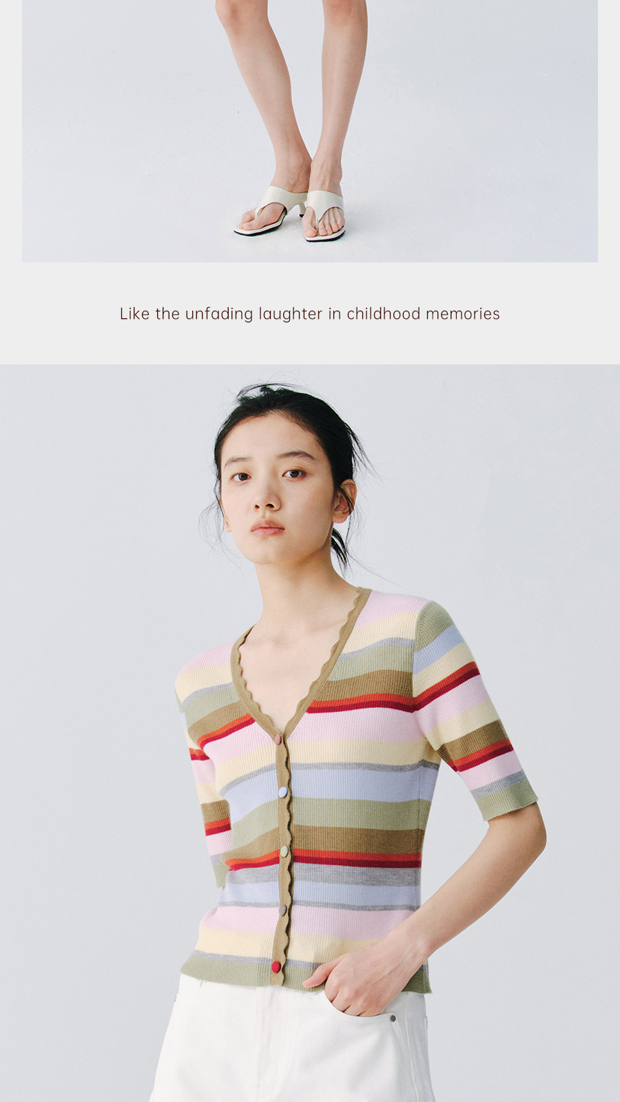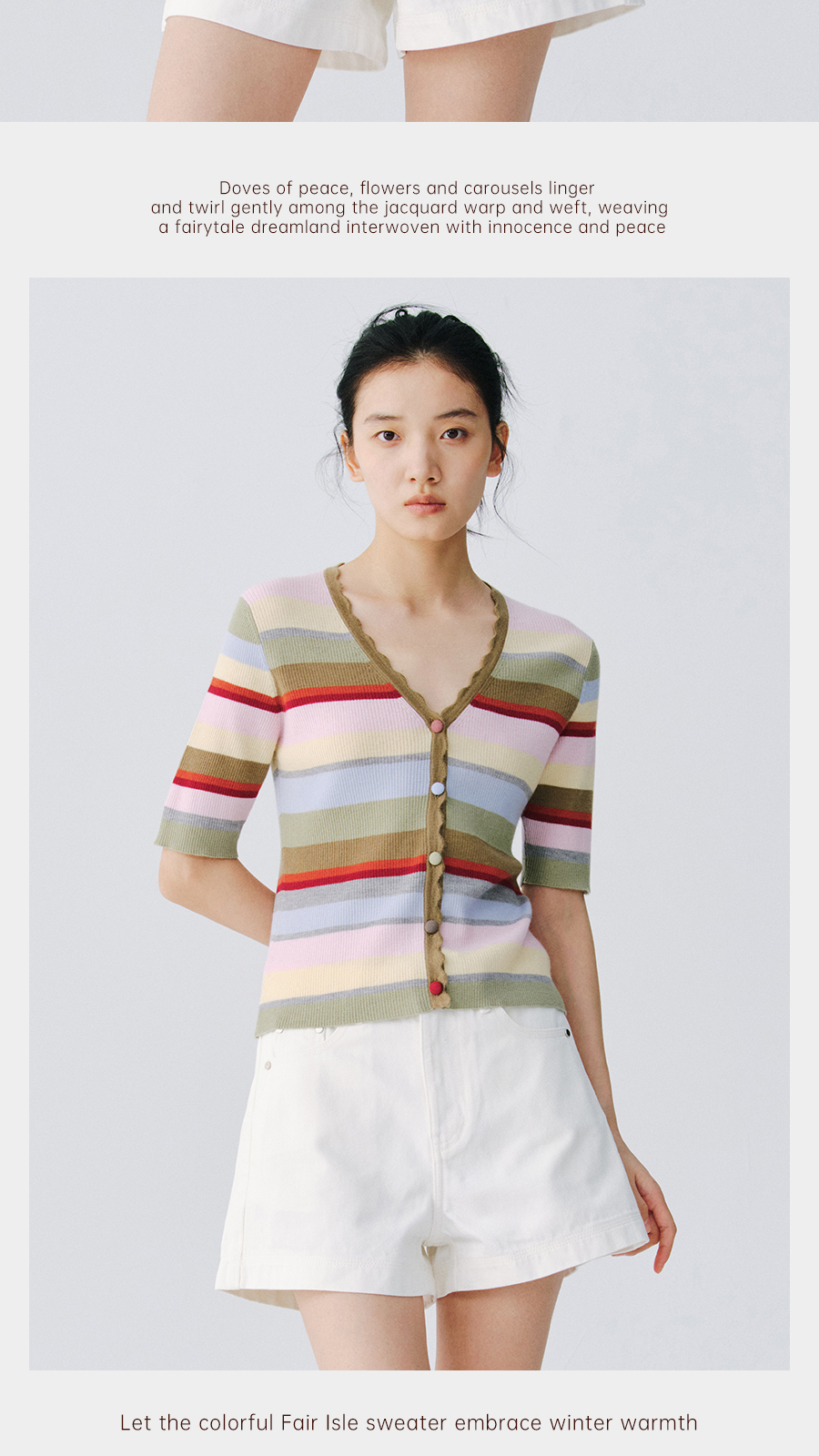 东黎 • 万物复苏 一目彩虹 山羊绒桑蚕丝 女士春夏V领半袖开衫 6050