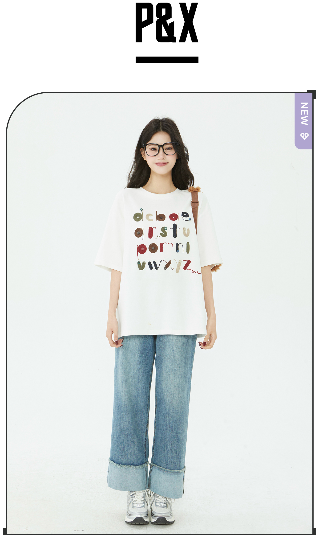 P&X设计师女装2025夏季短款百搭宽松圆领T恤825202260 白色