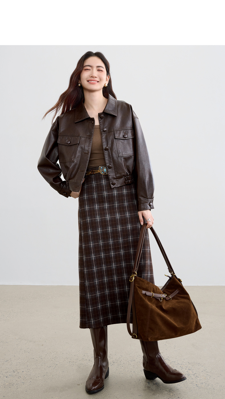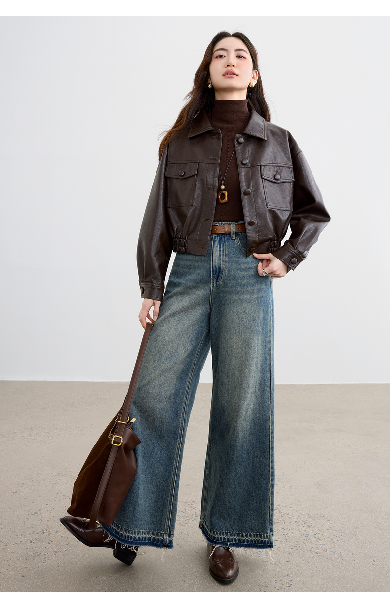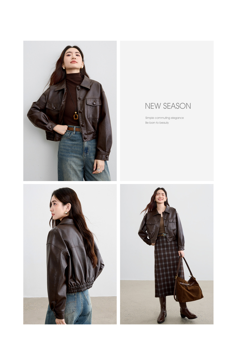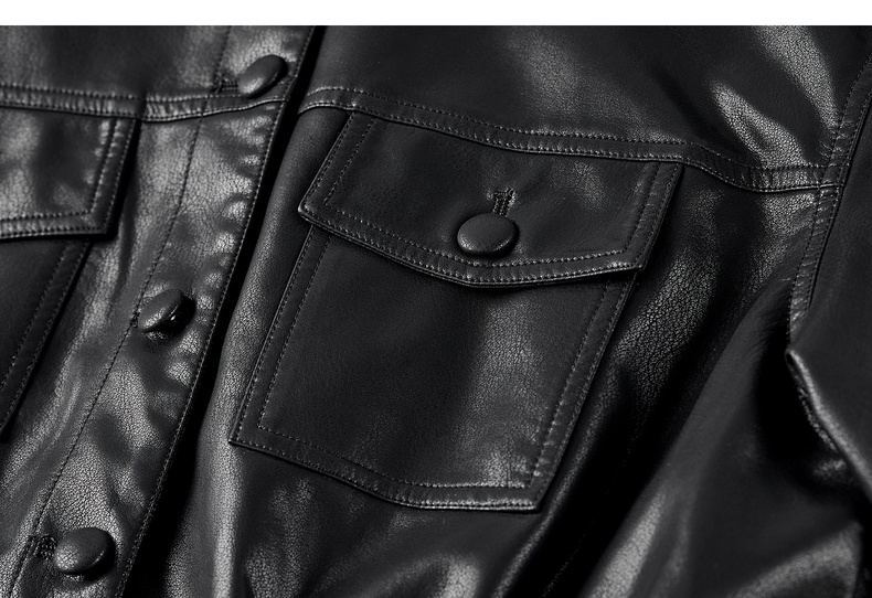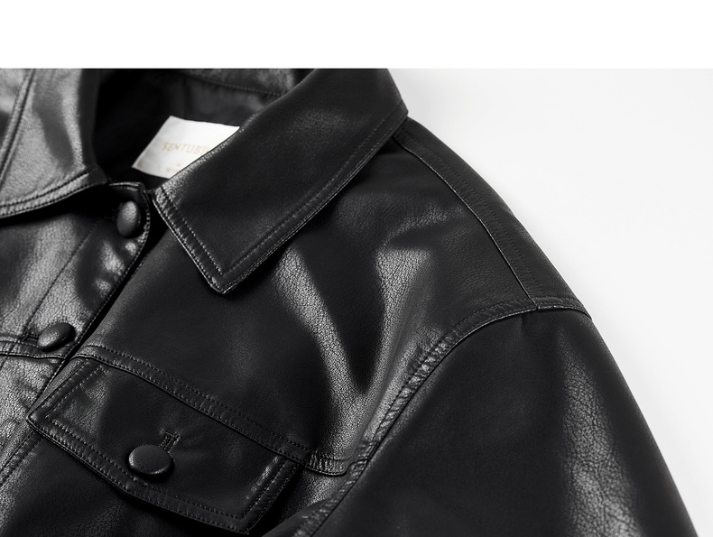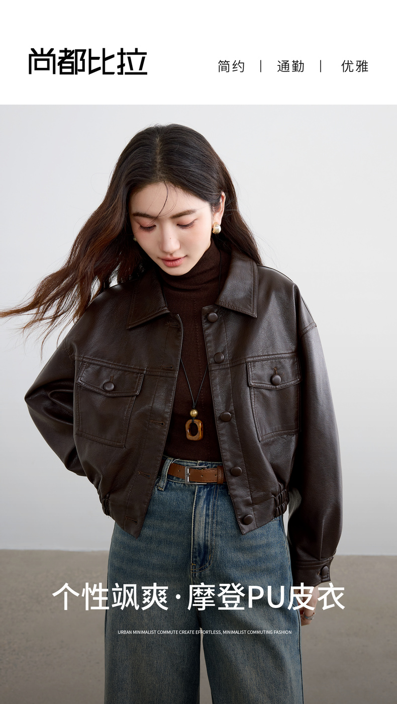 【内购】【再生纤维素】摩登通勤单排扣松紧下摆宽松显瘦PU机车皮衣外套-W53GA2744