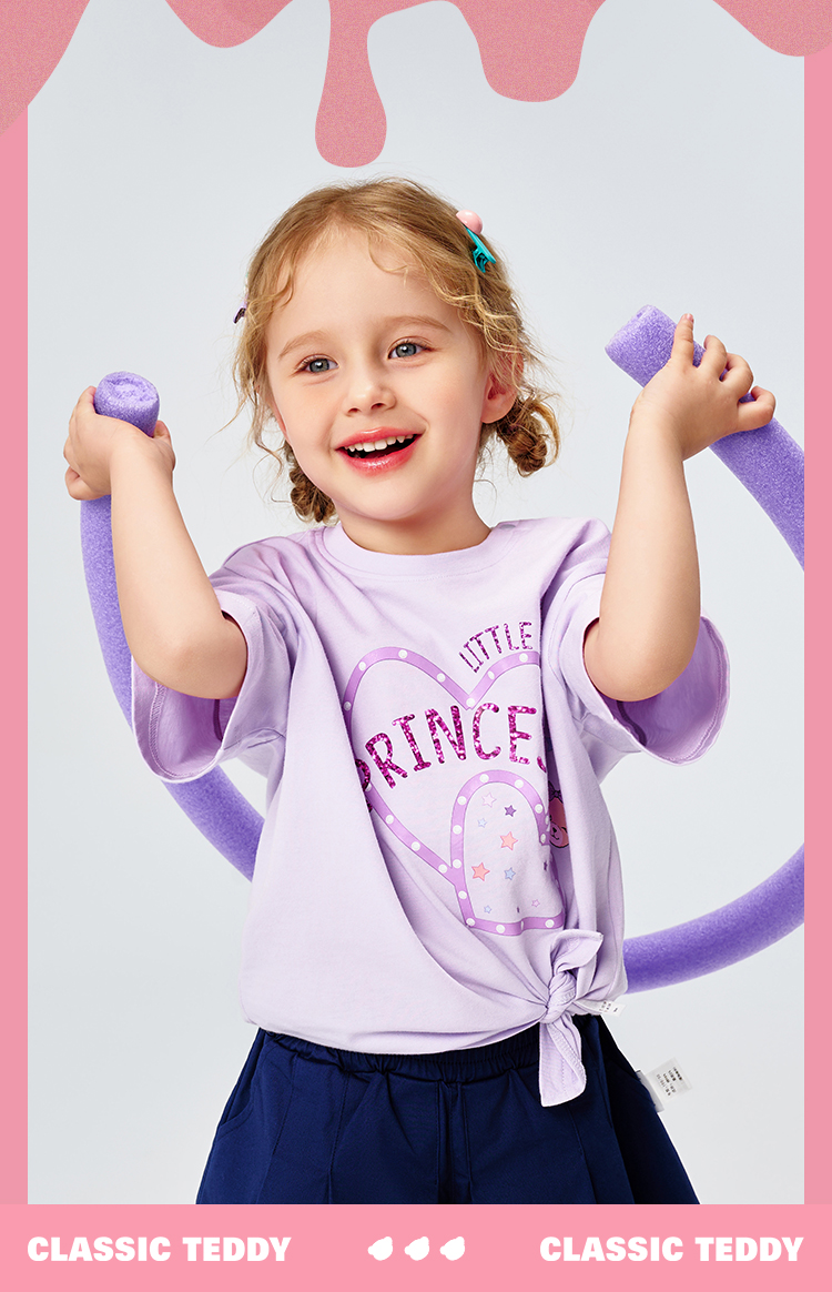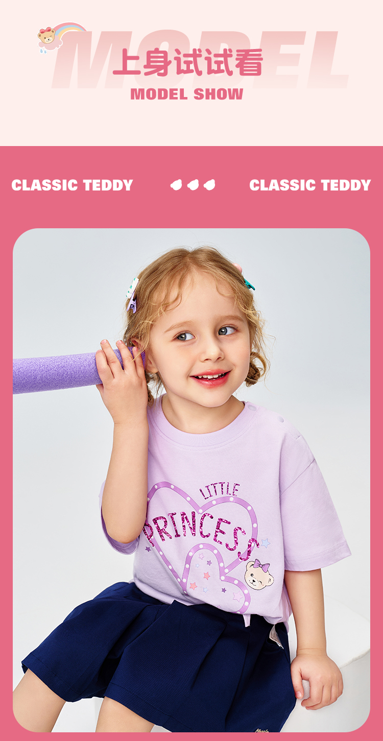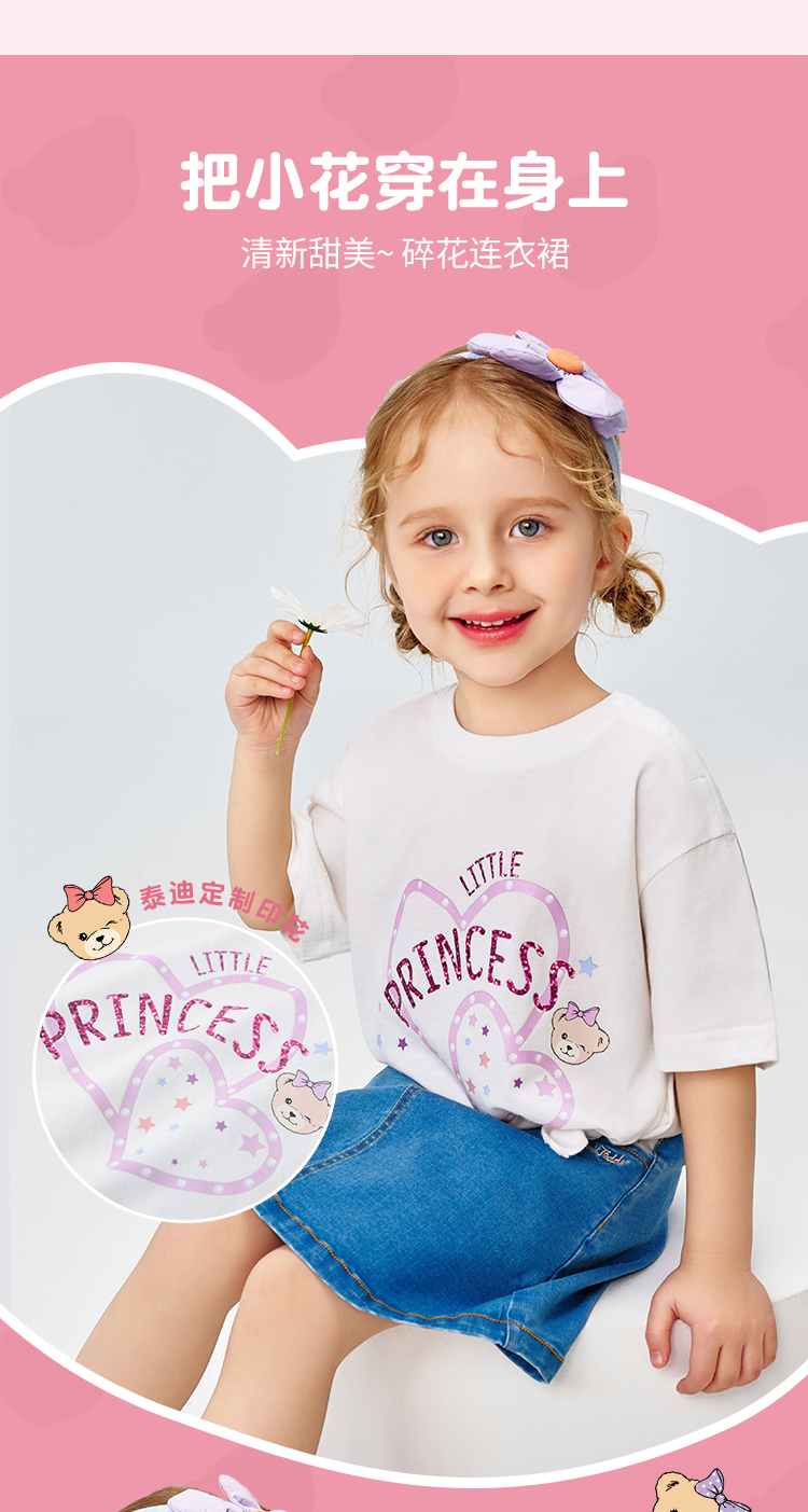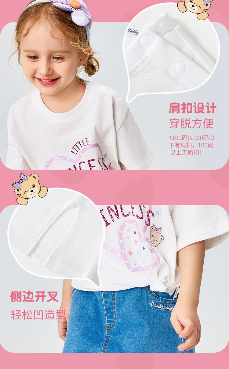 【90-110】【精典泰迪】女童夏季短袖T恤纯棉侧边开叉
