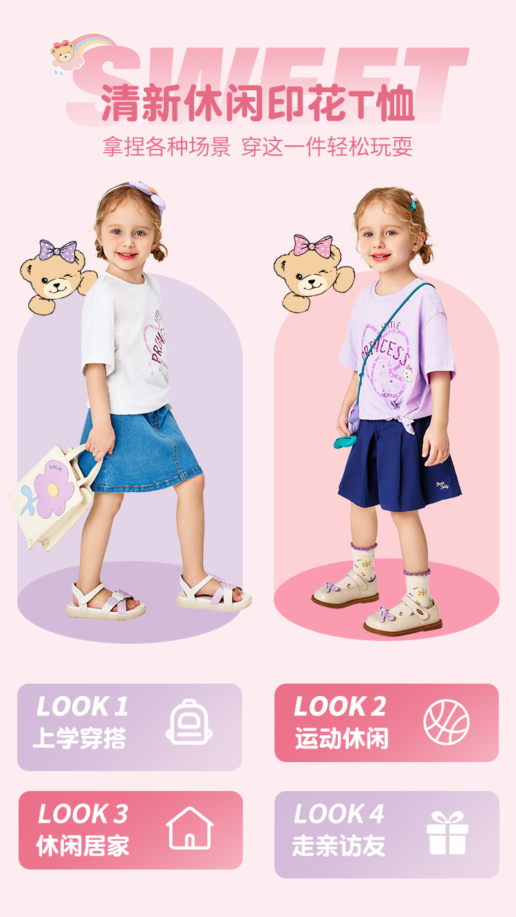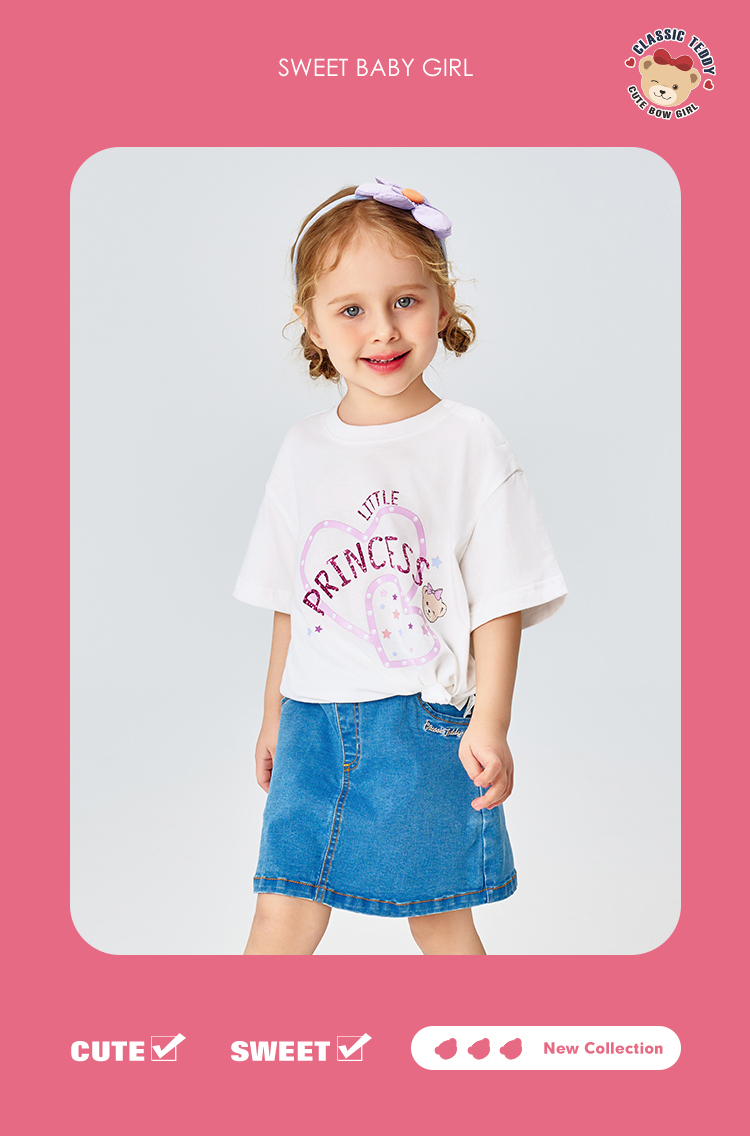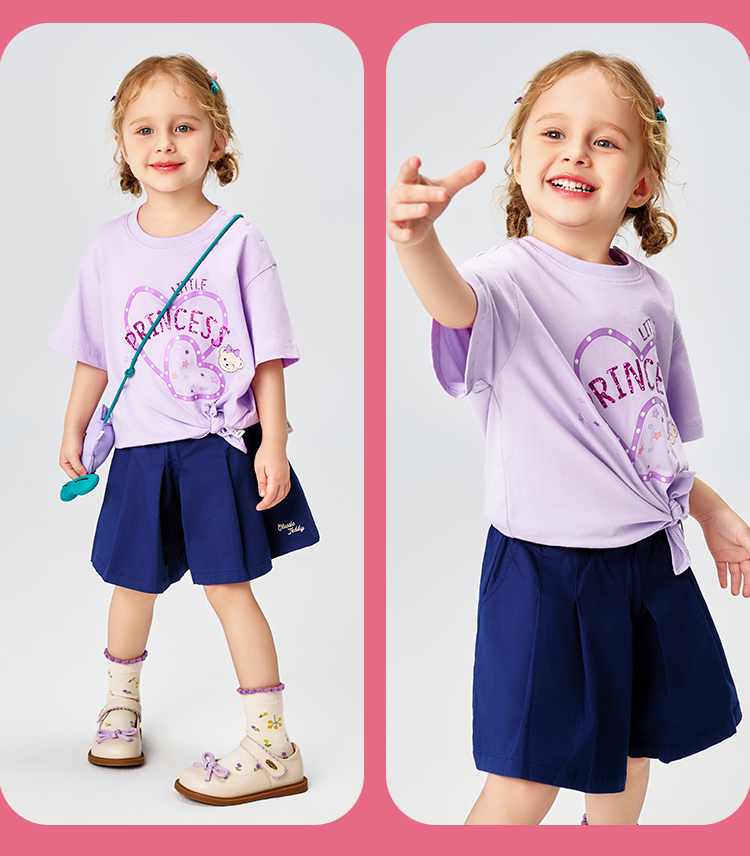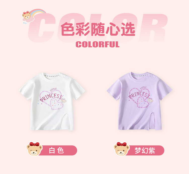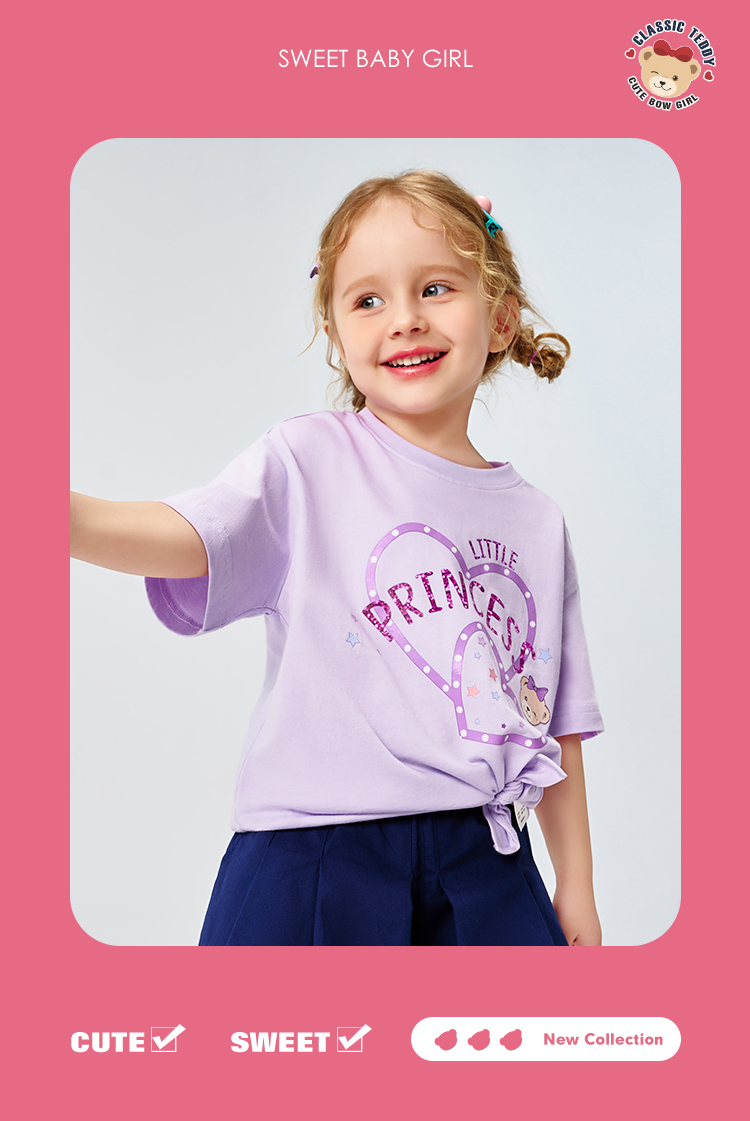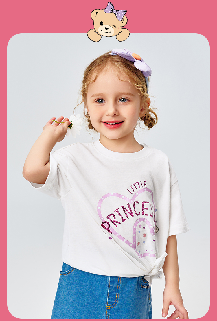 【90-110】【精典泰迪】女童夏季短袖T恤纯棉侧边开叉