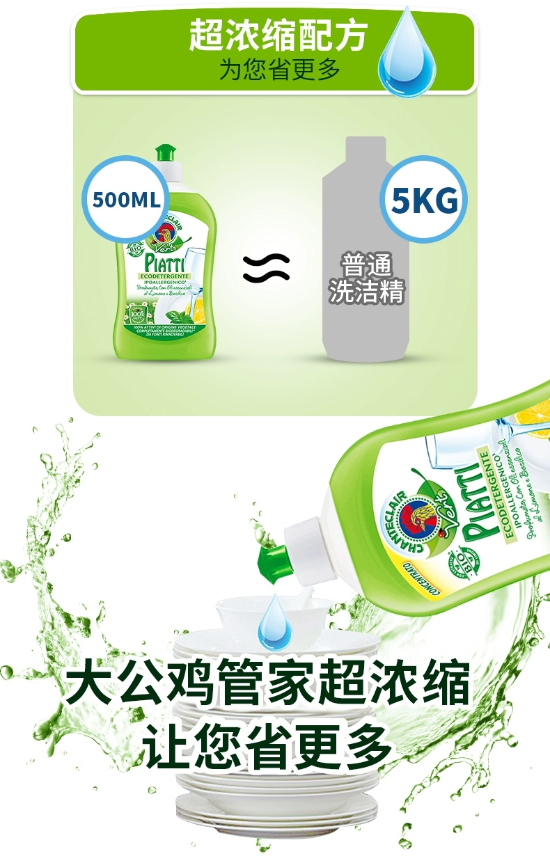 浓缩配方,浓缩不浓稠,一滴见效,强力去油污;