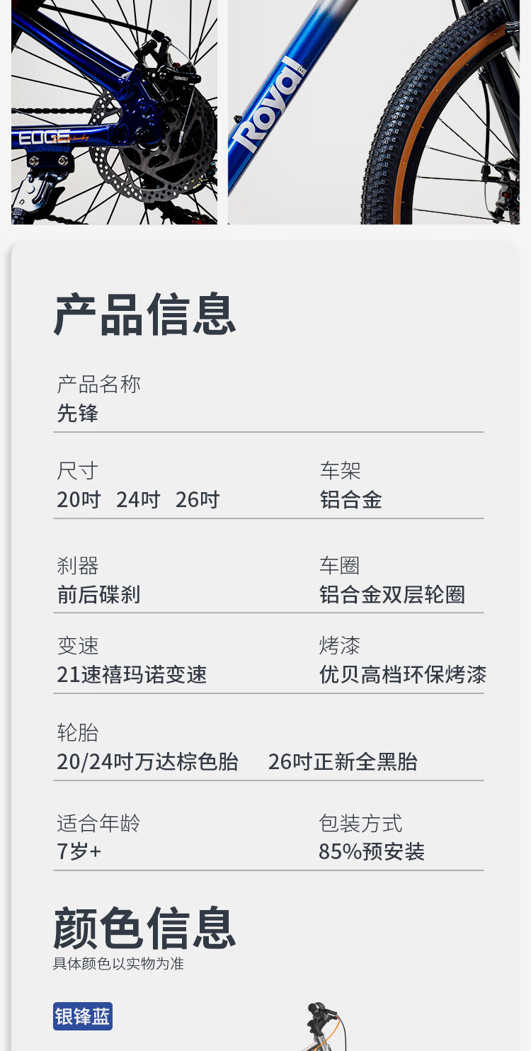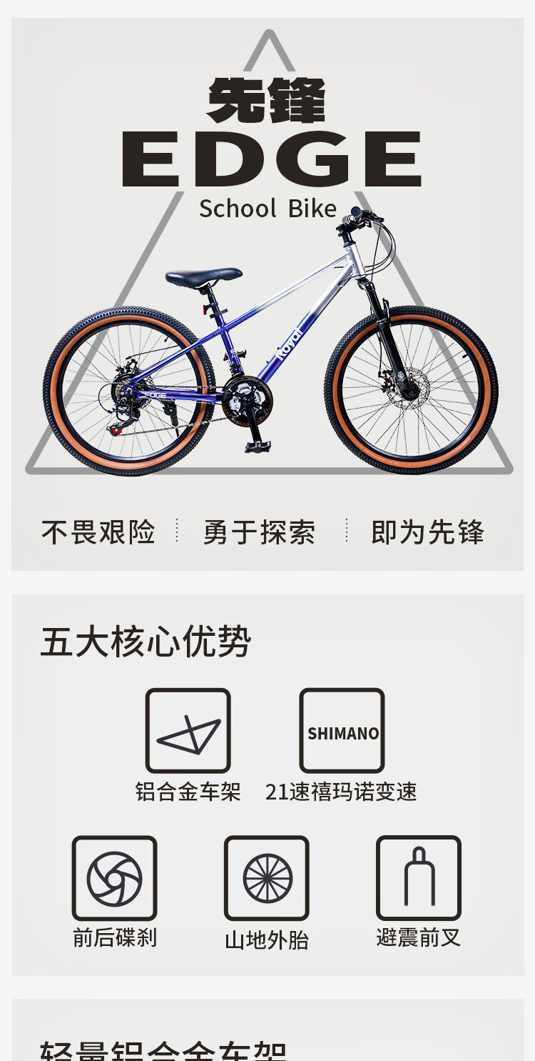 优贝铝合金先锋脚踏车青少年中小学生单车山地车 铝合金变速减震自行车XAHHZ
