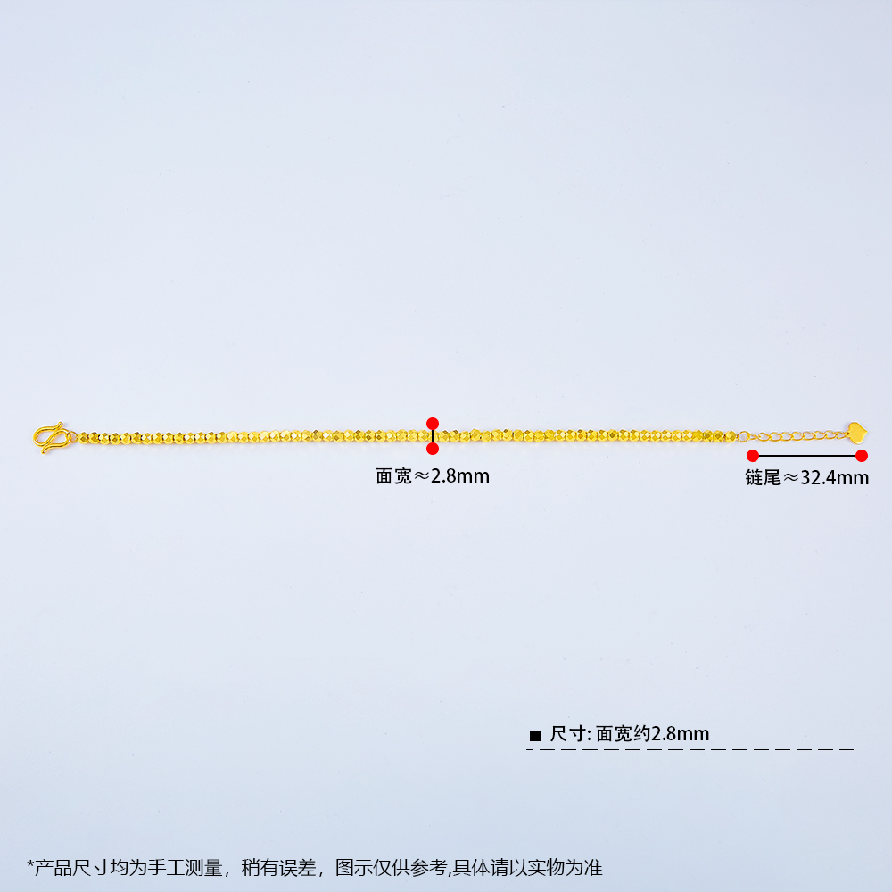 【限时克减150元】足金999.9 【精品】纯蹦迪珠手链(约2.8mm)蹦迪珠调节手链(内里为足金链)(USL00016)(预售产品下单后不退款不退货不换货不补差价)