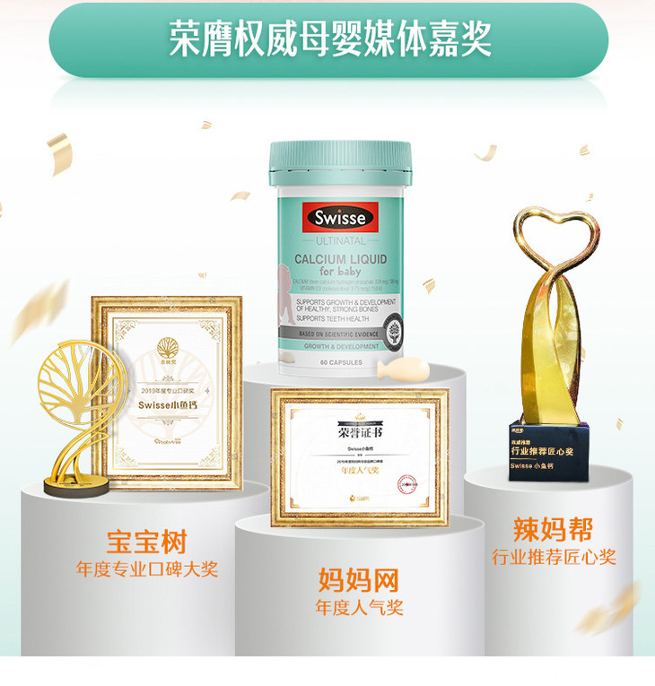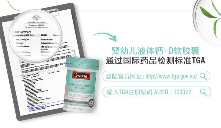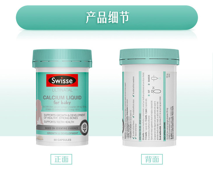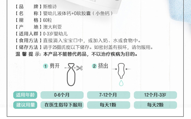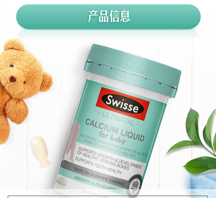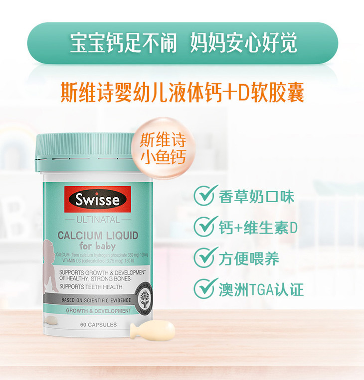 澳洲Swisse斯维诗小鱼钙婴幼儿液体钙+D软胶囊60粒