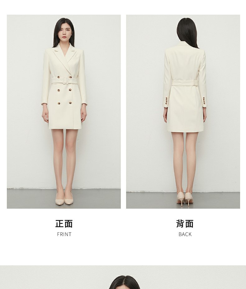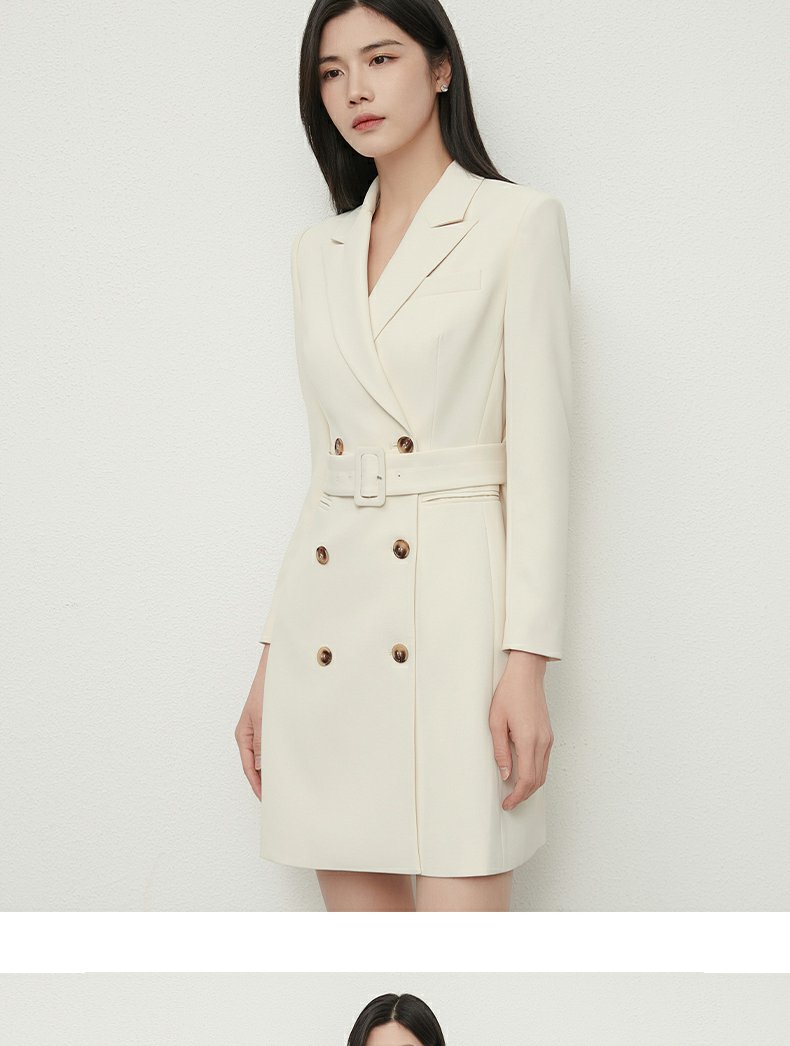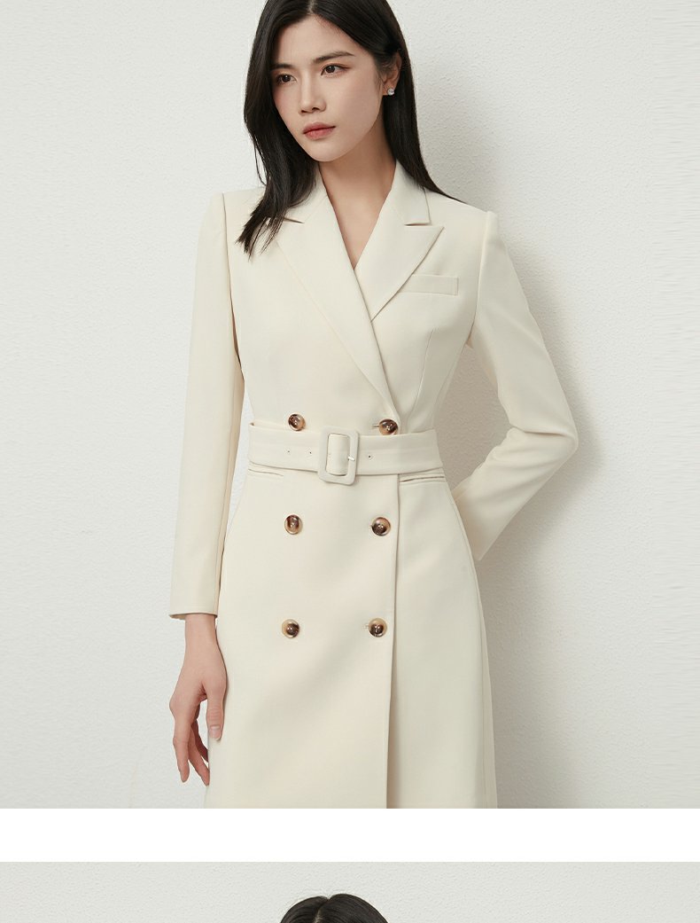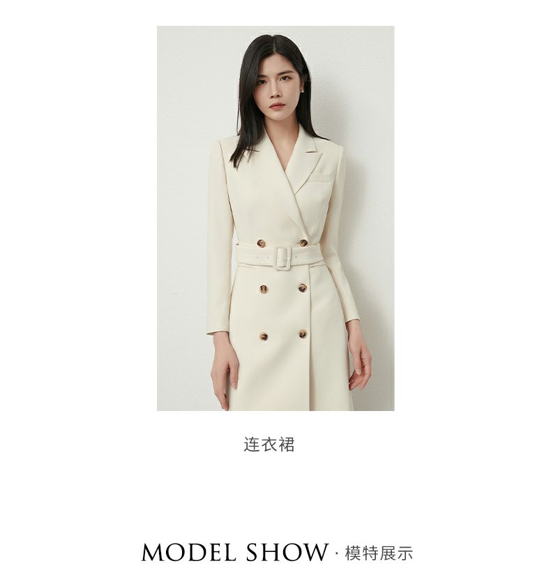 IWY/杏色连衣裙正装裙双排扣长袖美容院摄影工服西装领裙子Q13148