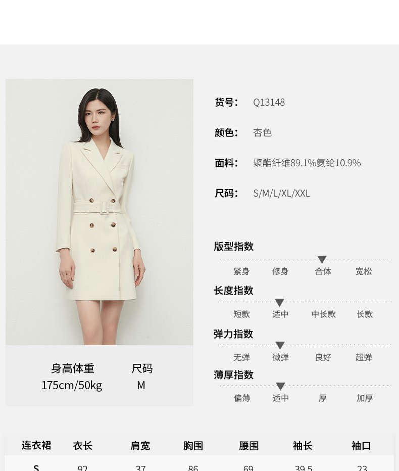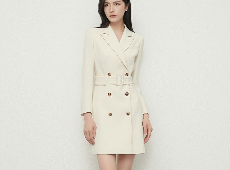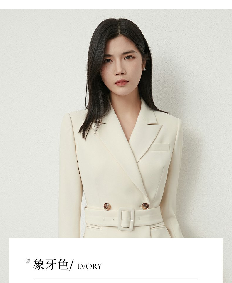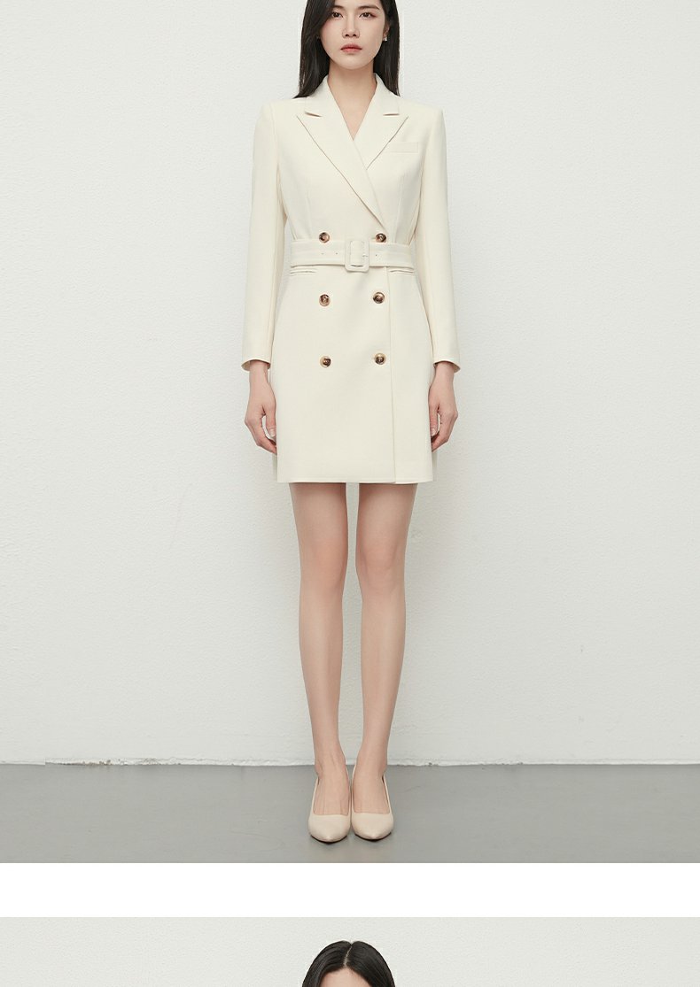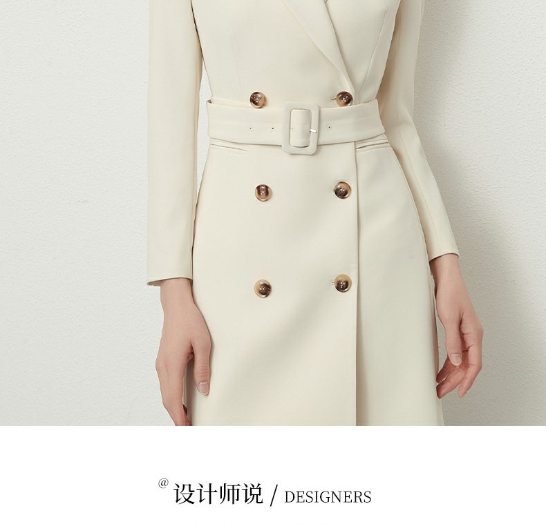 IWY/杏色连衣裙正装裙双排扣长袖美容院摄影工服西装领裙子Q13148