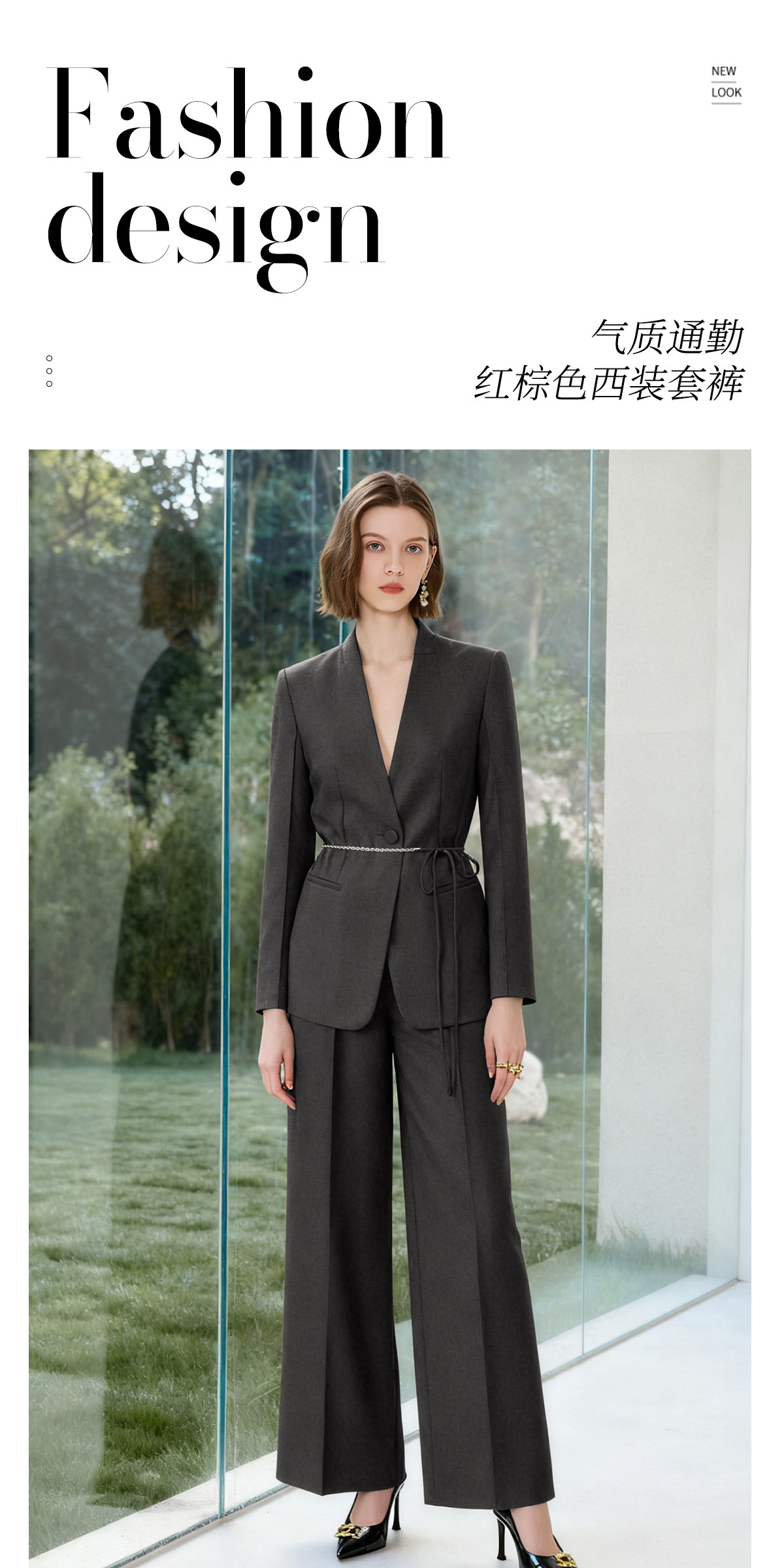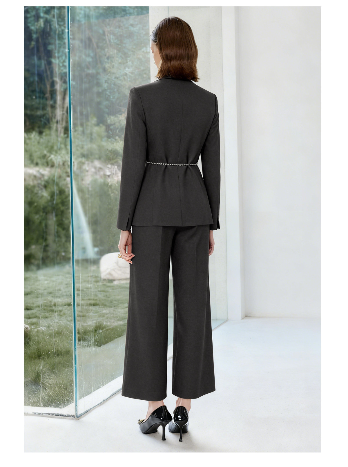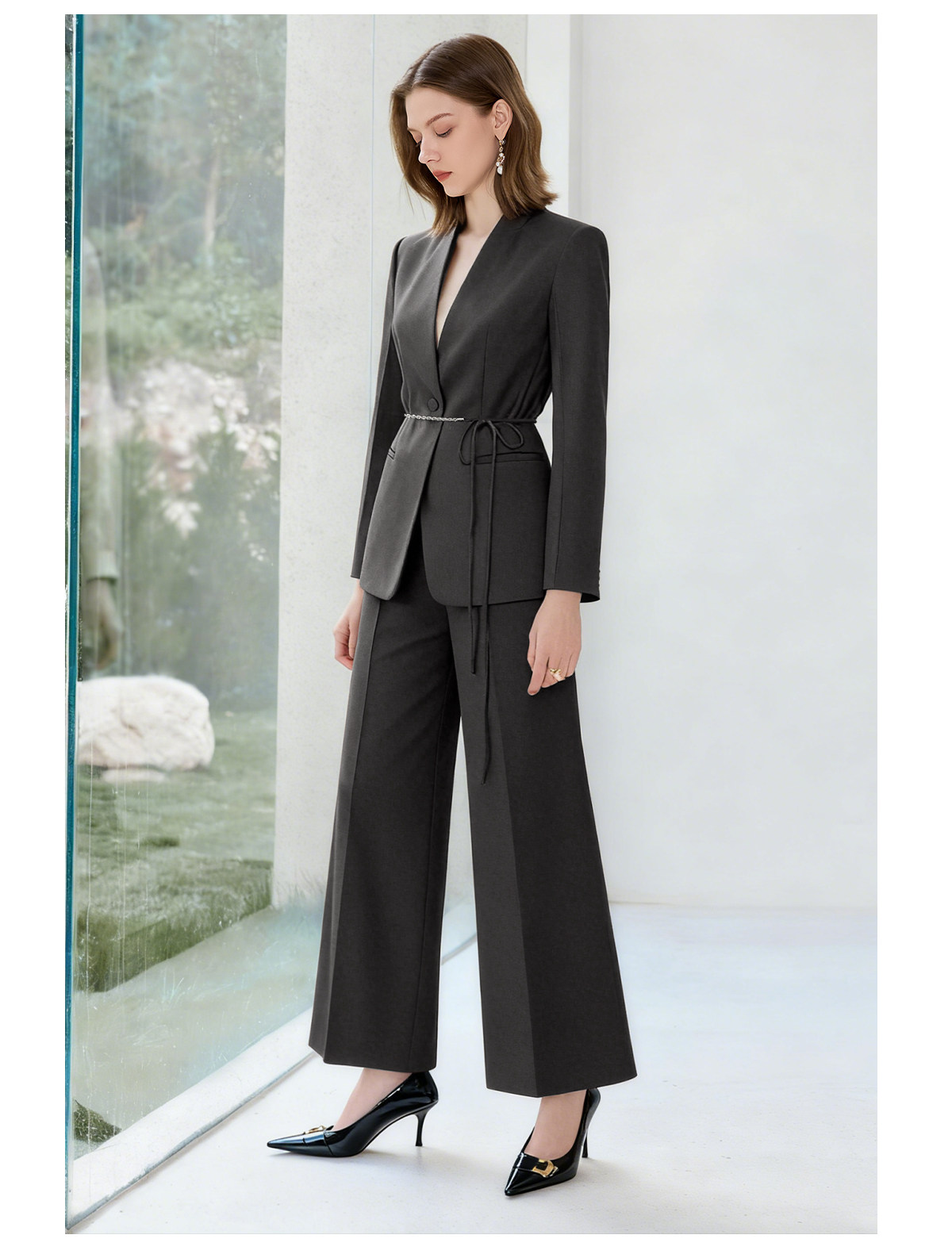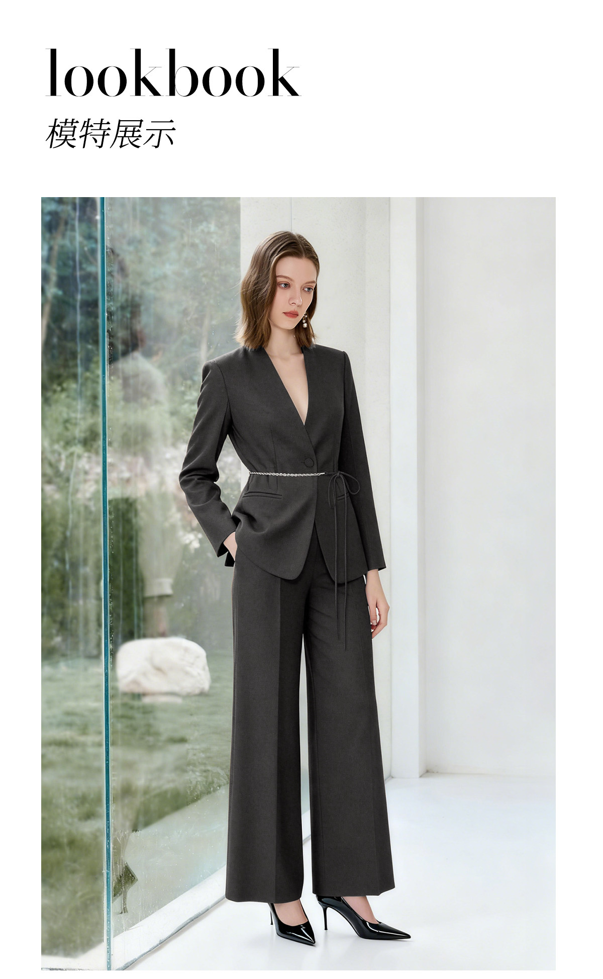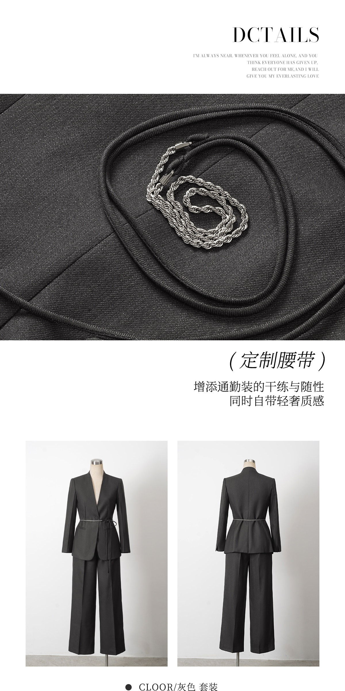 IWY/高级感灰色西装套装女V领收腰显瘦通勤职业装极简风两件套WCP333