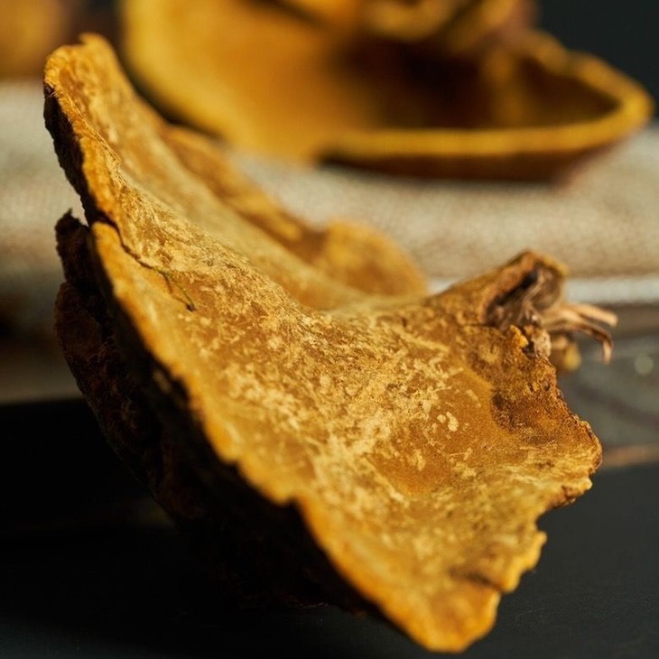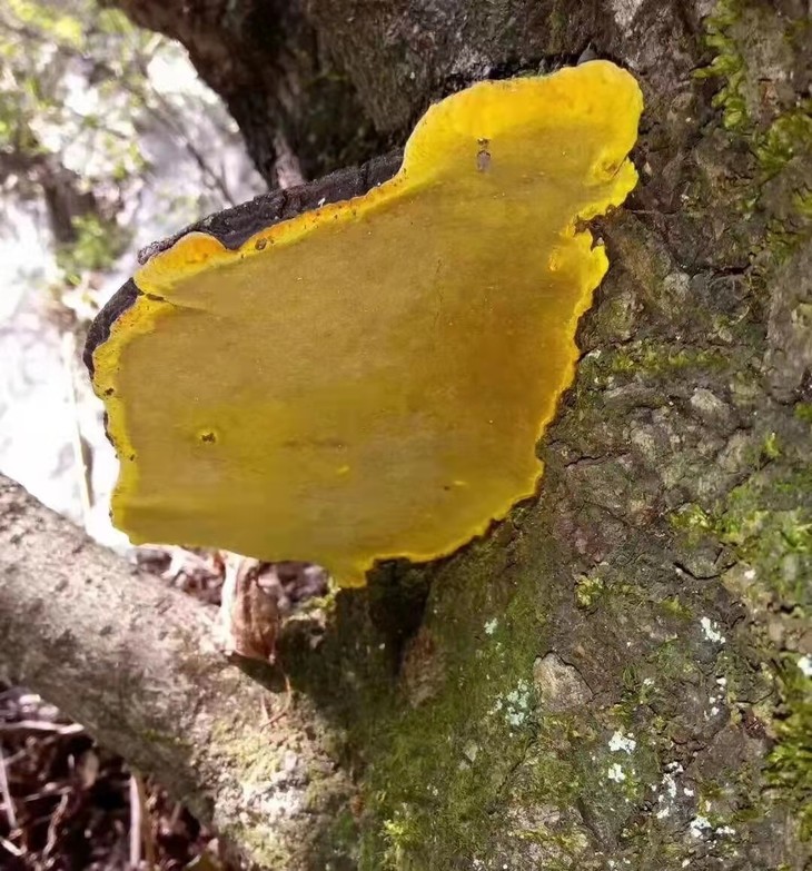 桑黄实体无柄,菌盖呈扁半球形或马蹄形,颜色鲜黄是其一大特点!