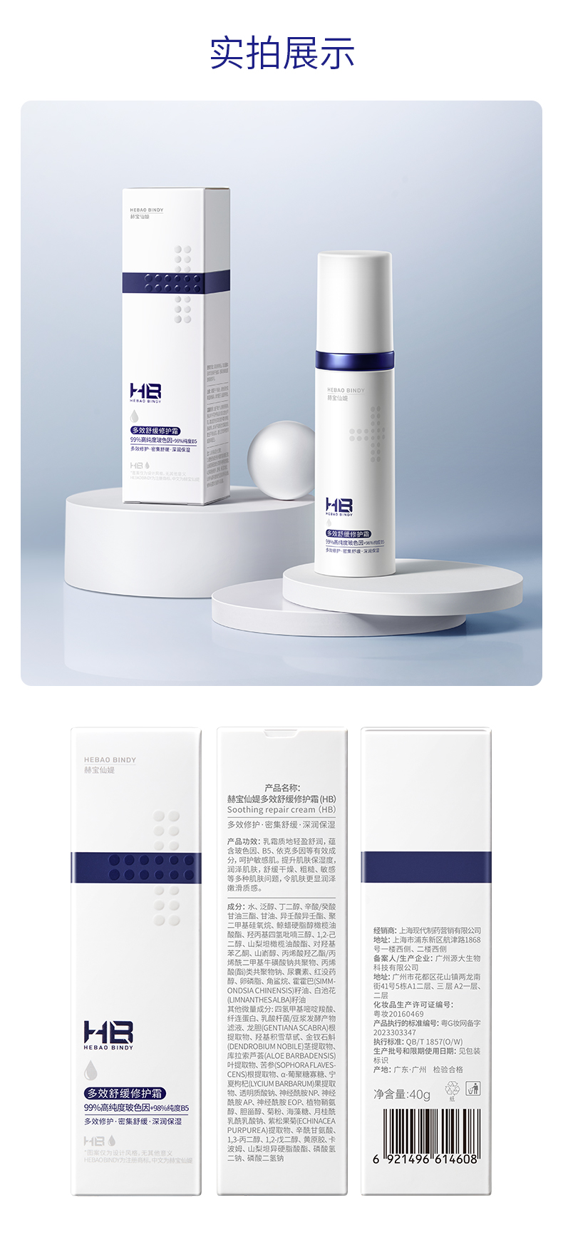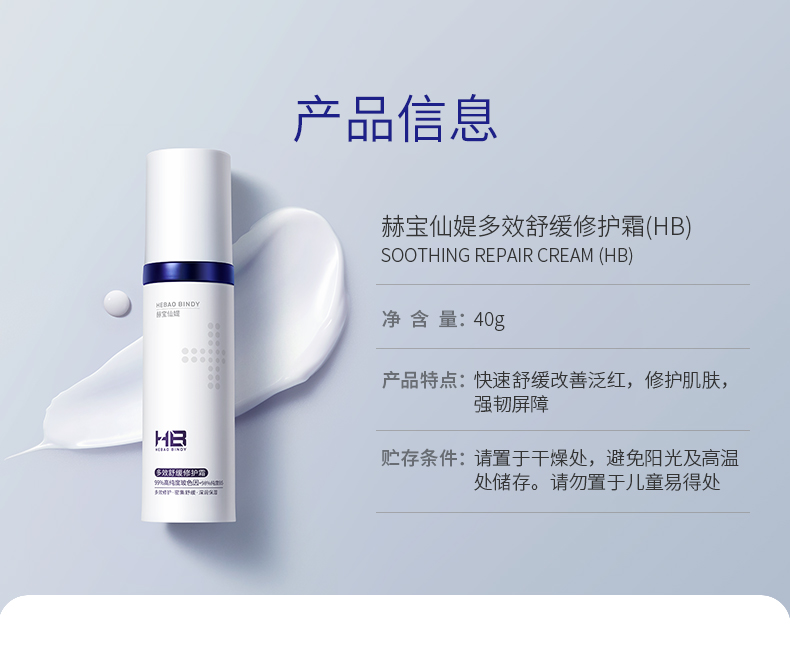 【醒粉福利29.9元2支】HB赫宝仙媞国药旗下多效舒缓修护霜补水保湿40g/支