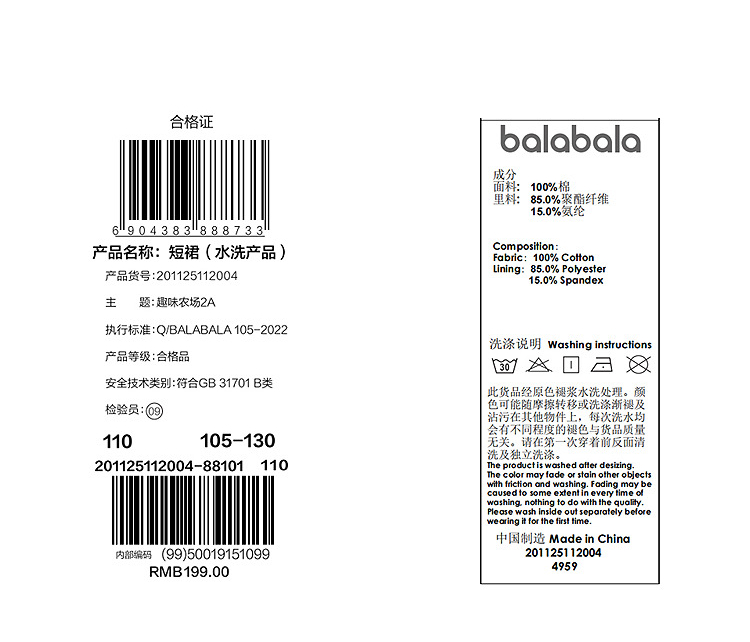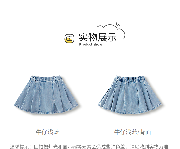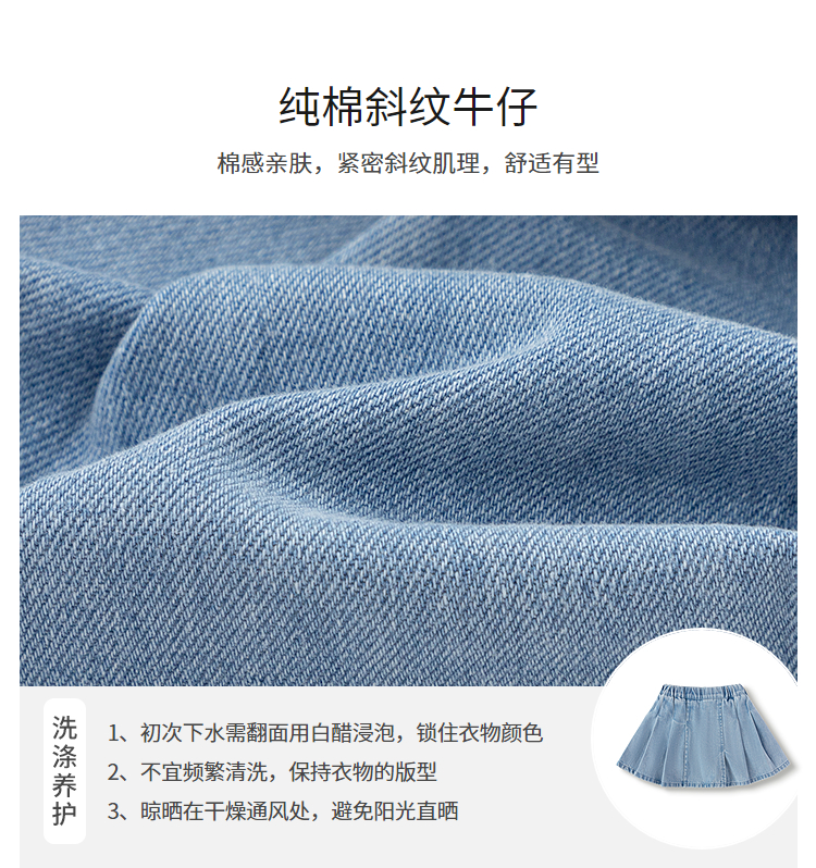 巴拉巴拉童装女童短裙牛仔百褶裙2025春新款裙子百搭