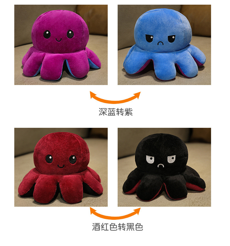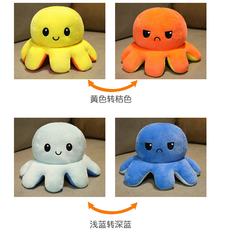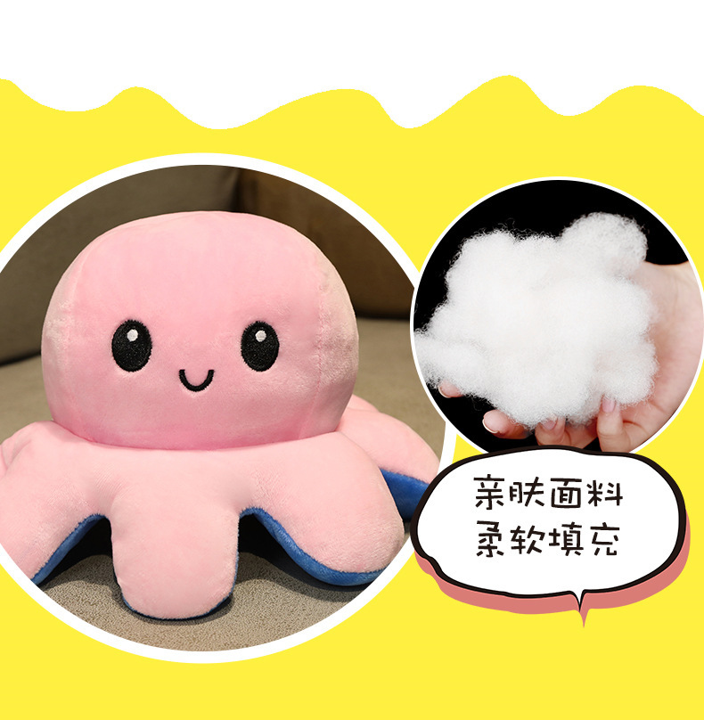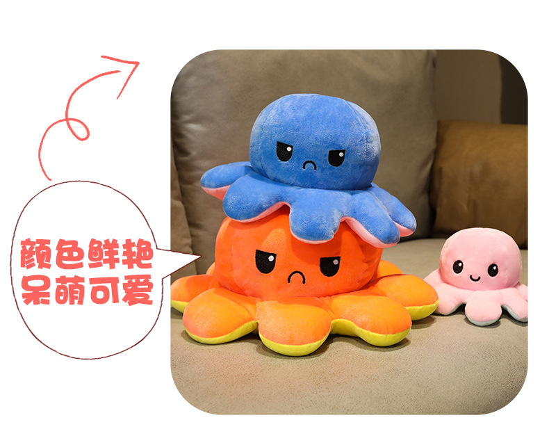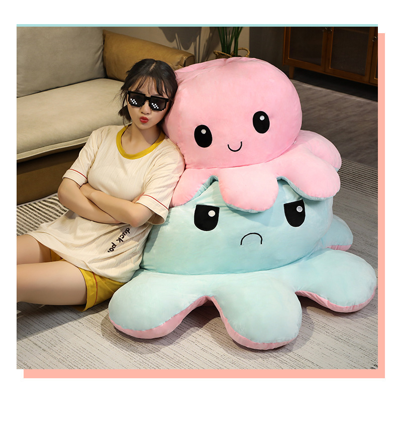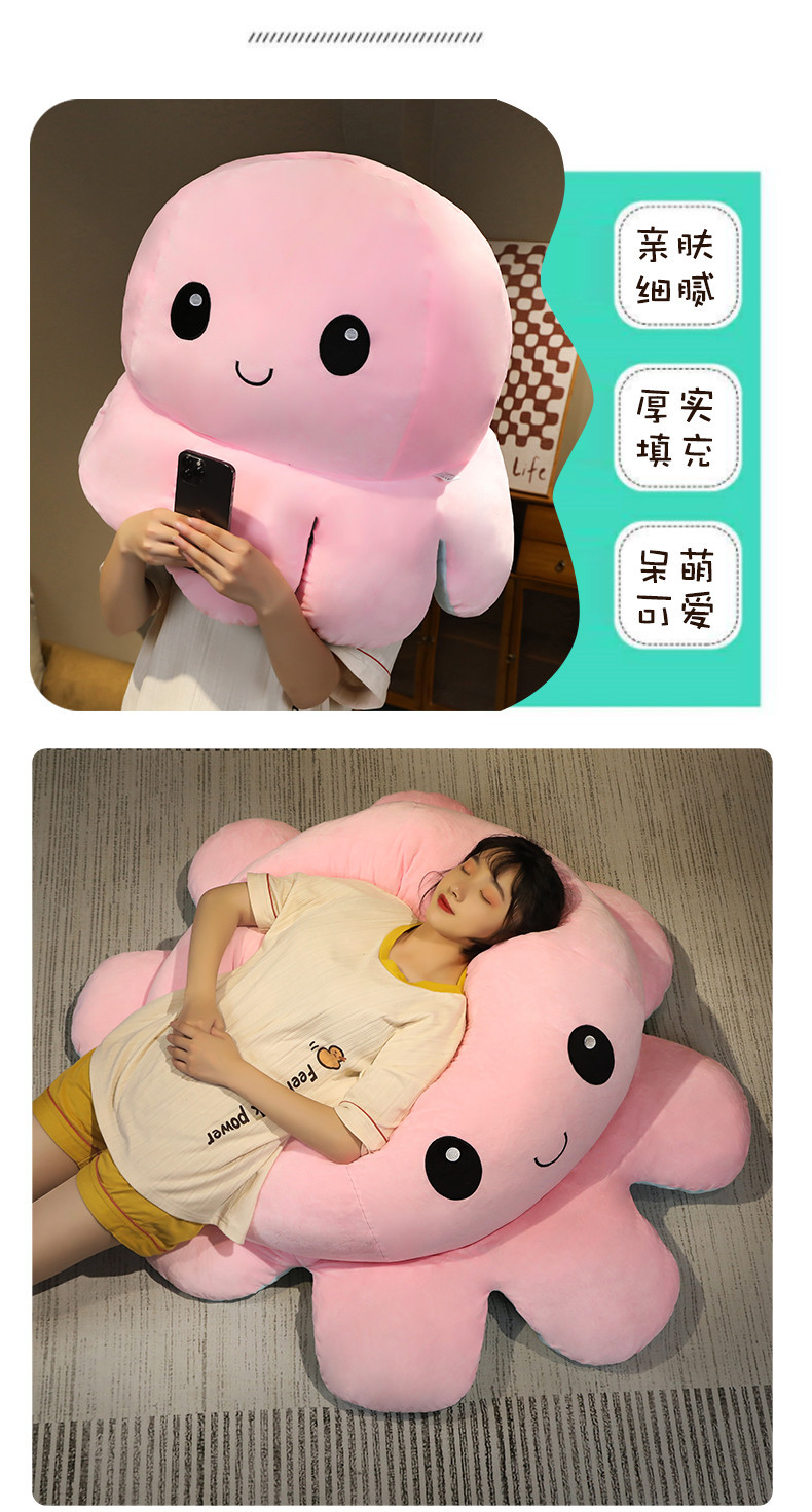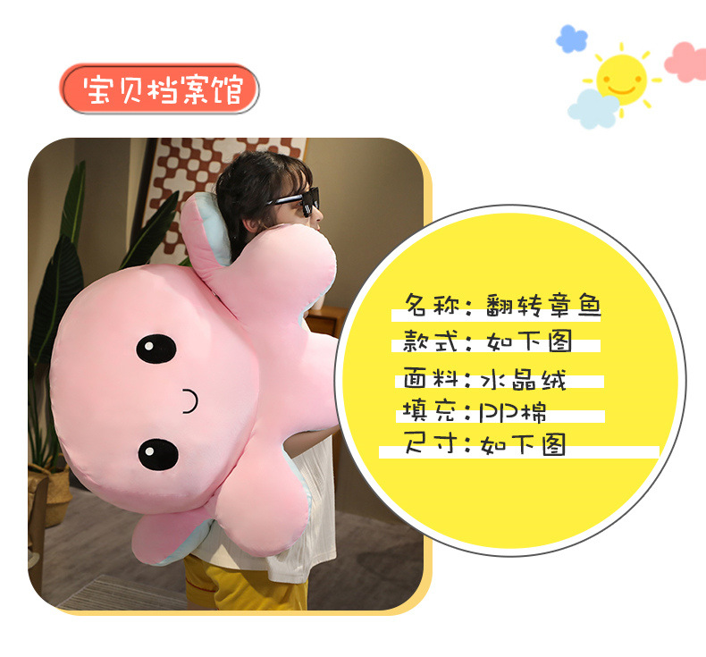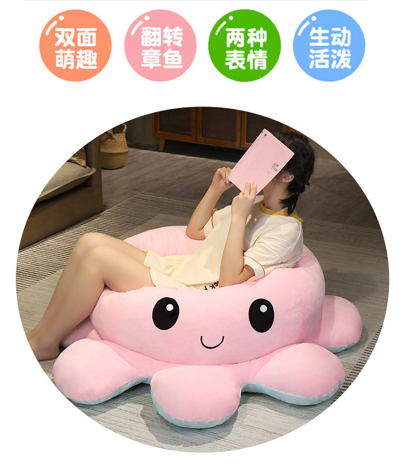 【双面表情萌趣翻转,水晶绒面料手感舒适】可爱翻转章鱼公仔超大双面翻转变脸八爪鱼娃娃沙发靠枕女生礼物.TA
