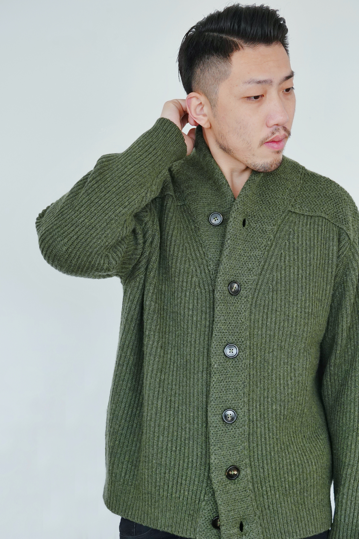 #1985 「BE GENTLE CARDIGAN 」 30% CASHMERE 70% WOOL 绅士青果领厚实开衫