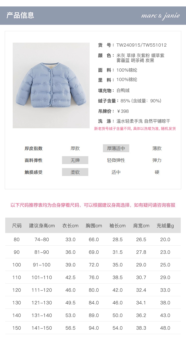 马克珍妮男女童超轻保暖羽绒服上衣 儿童秋冬新款校服神器240915/551012