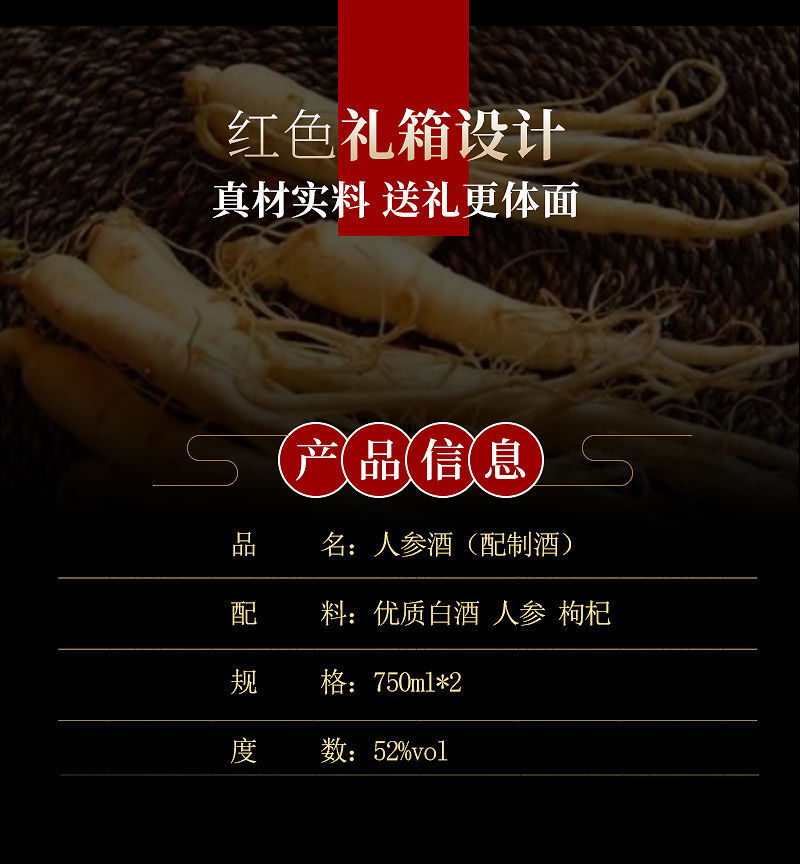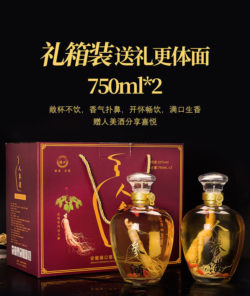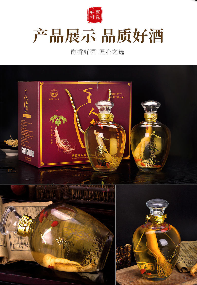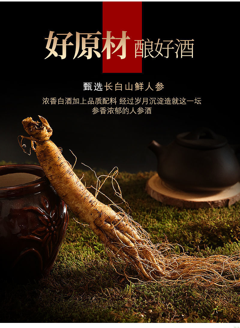 【匠心之酿!长白山鲜人参枸杞酒】 参大饱满,自喝健康,送礼更体面,长白山人参枸杞大坛酒整箱52度2瓶750ml 养生酒