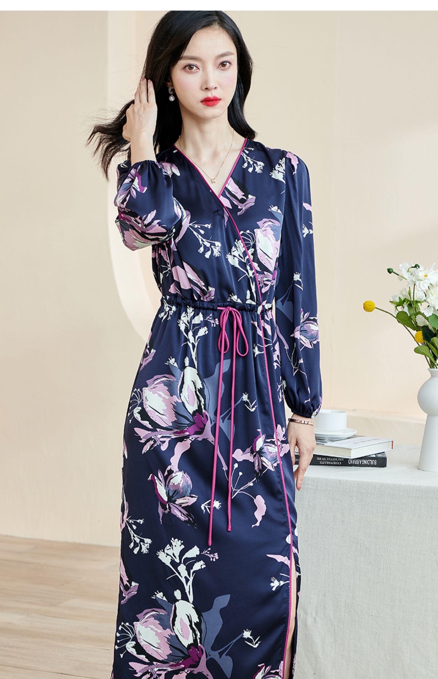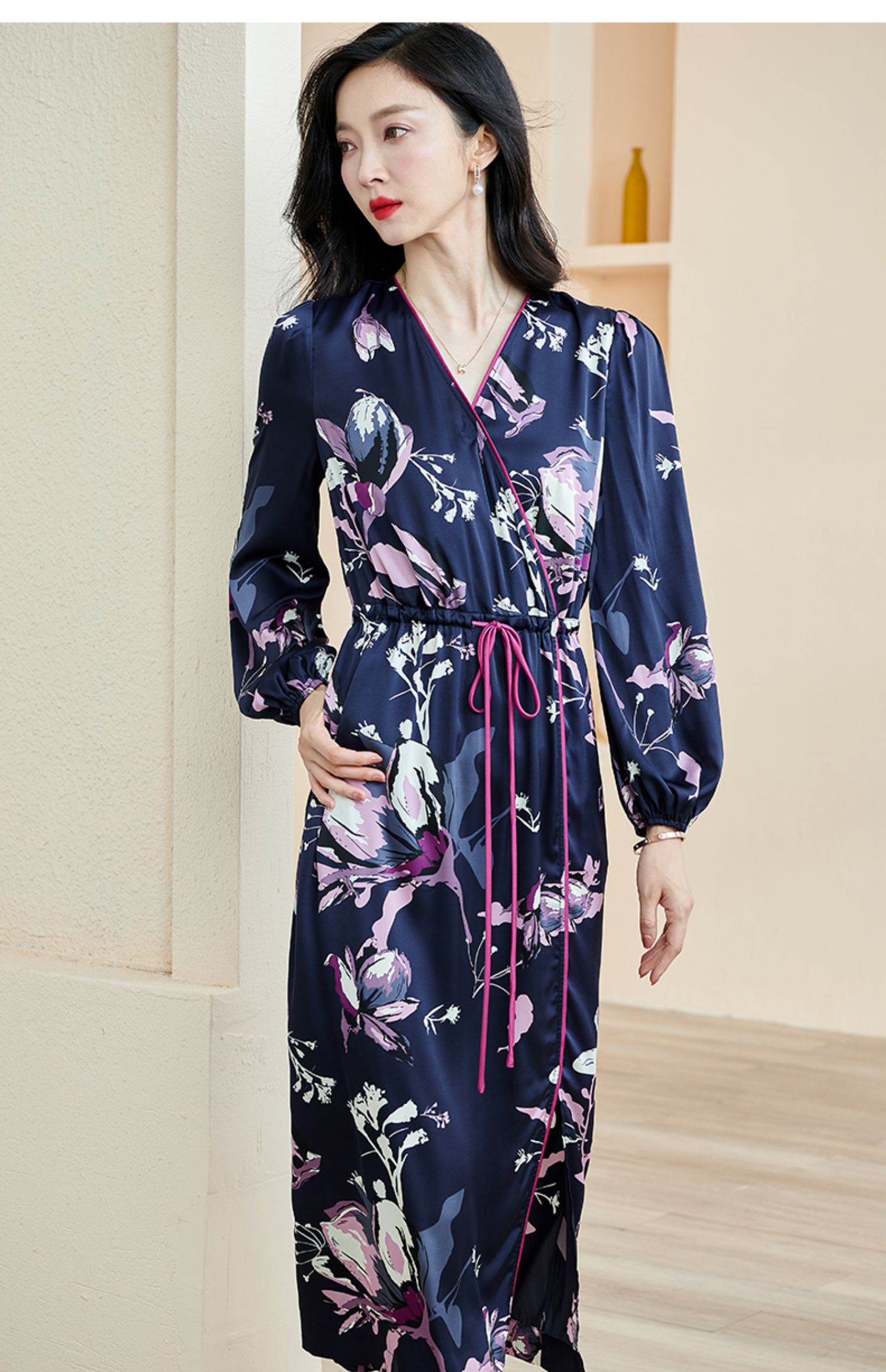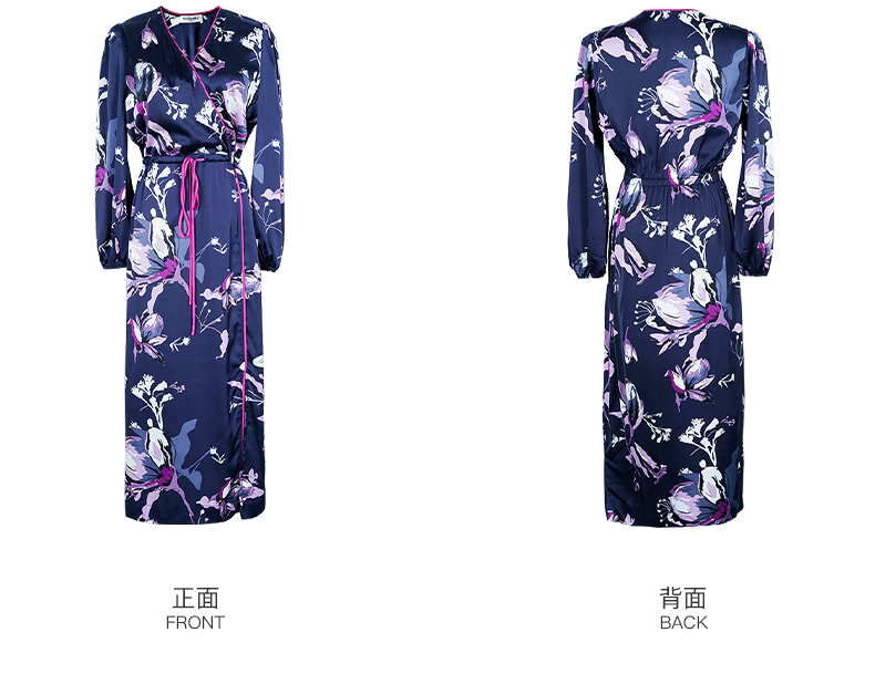 剩S/M 米思阳2024秋季新款知性优雅大花连衣裙垂感大摆收腰中长裙子2231