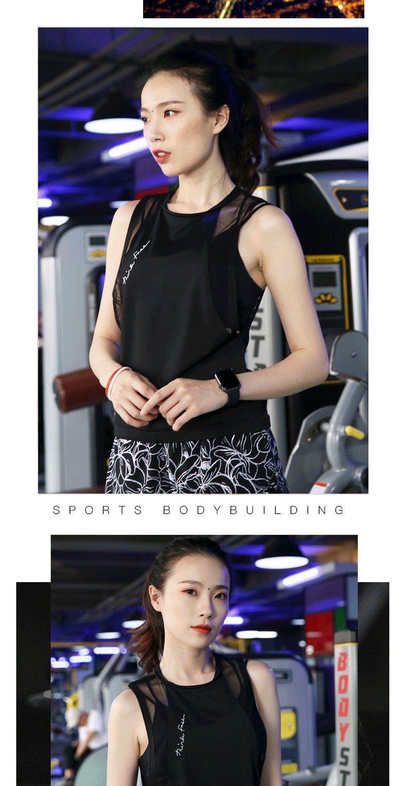闪塑 运动t恤女无袖拼纱后背网眼轻薄健身训练罩衫跑步运动背心