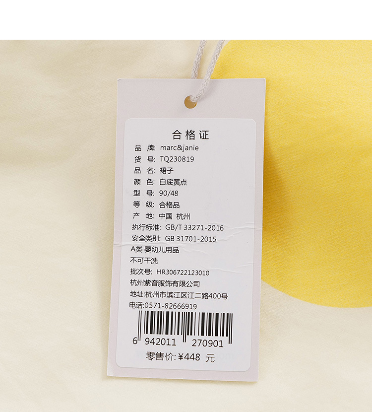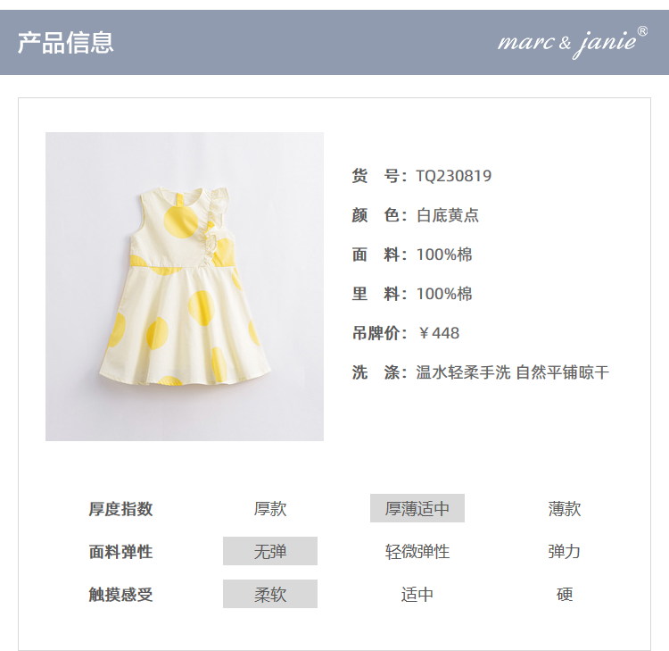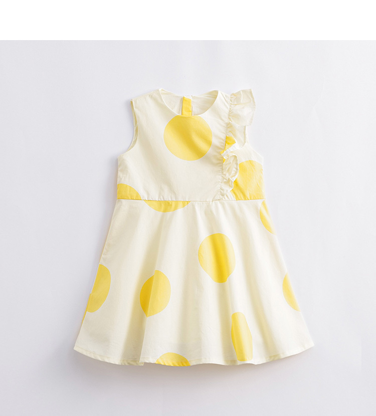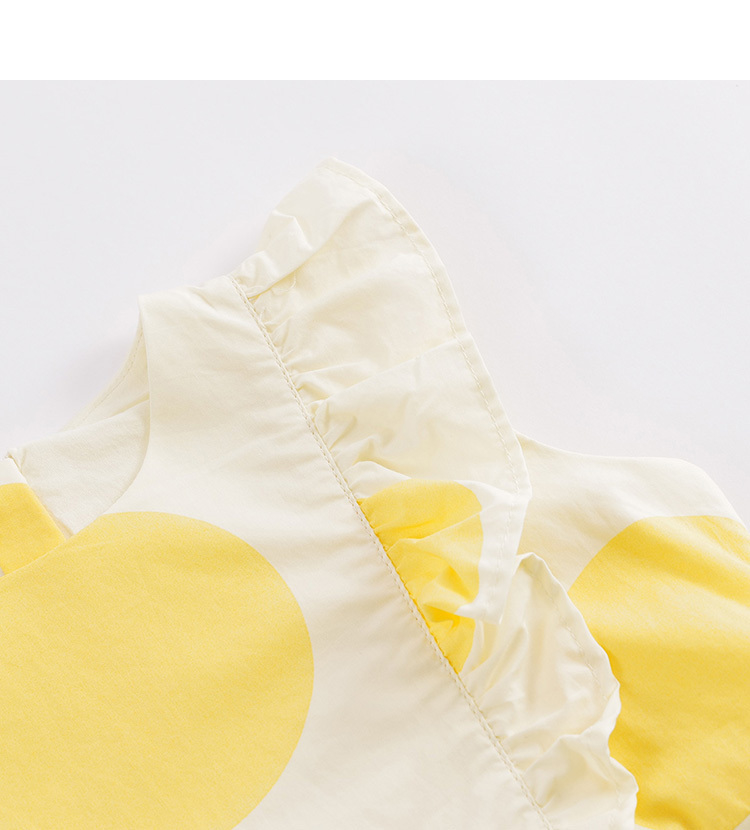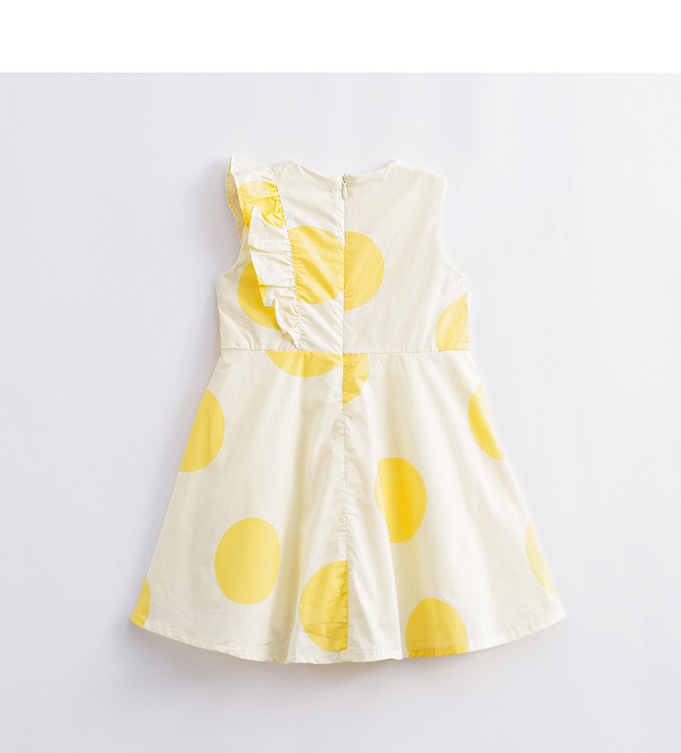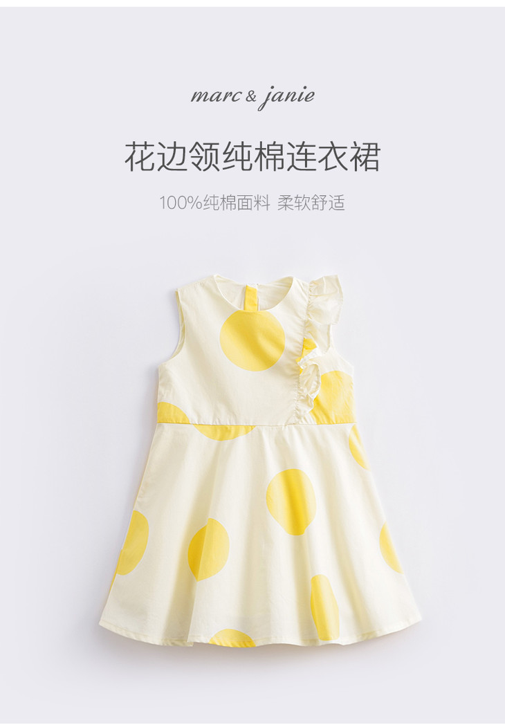 马克珍妮新款夏装 女童黄色波点花边领纯棉连衣裙230819